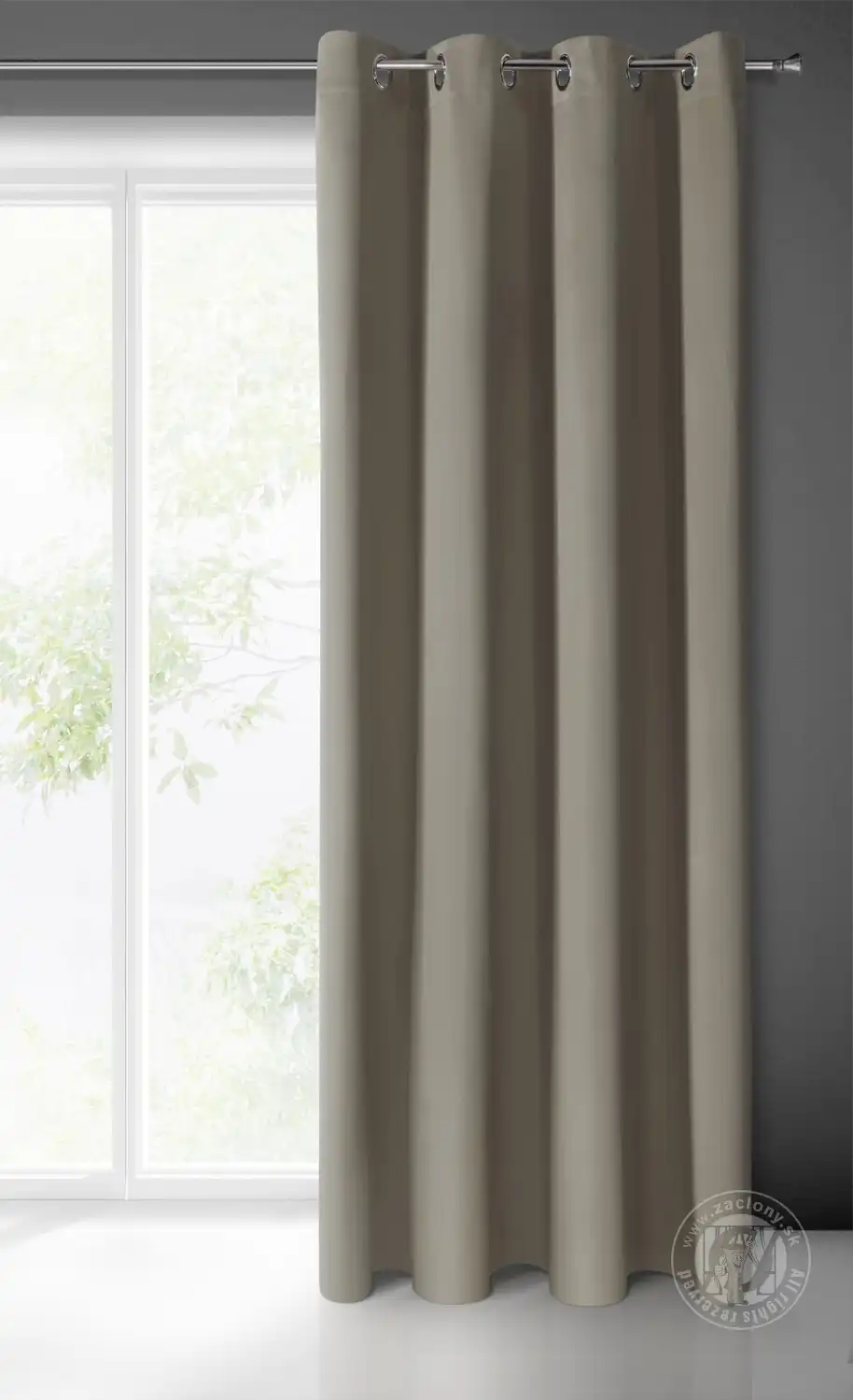 Záves je vybavený očkami na zavesenie na záclonové tyče, ktoré po zavesení vytvárajú rovnomerné vlny, čím mu dodávajú krásny vzhľad.