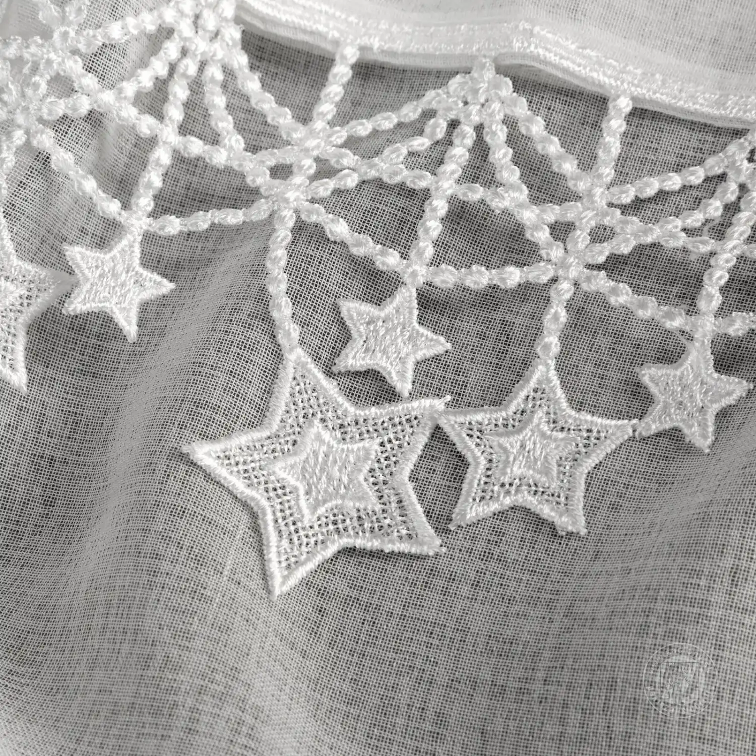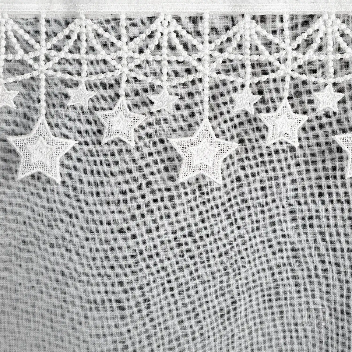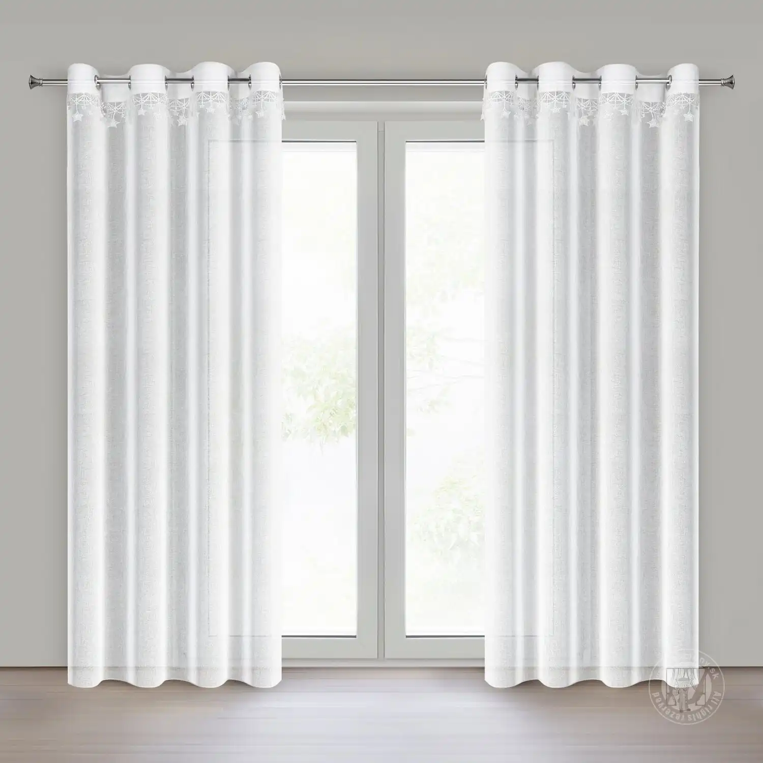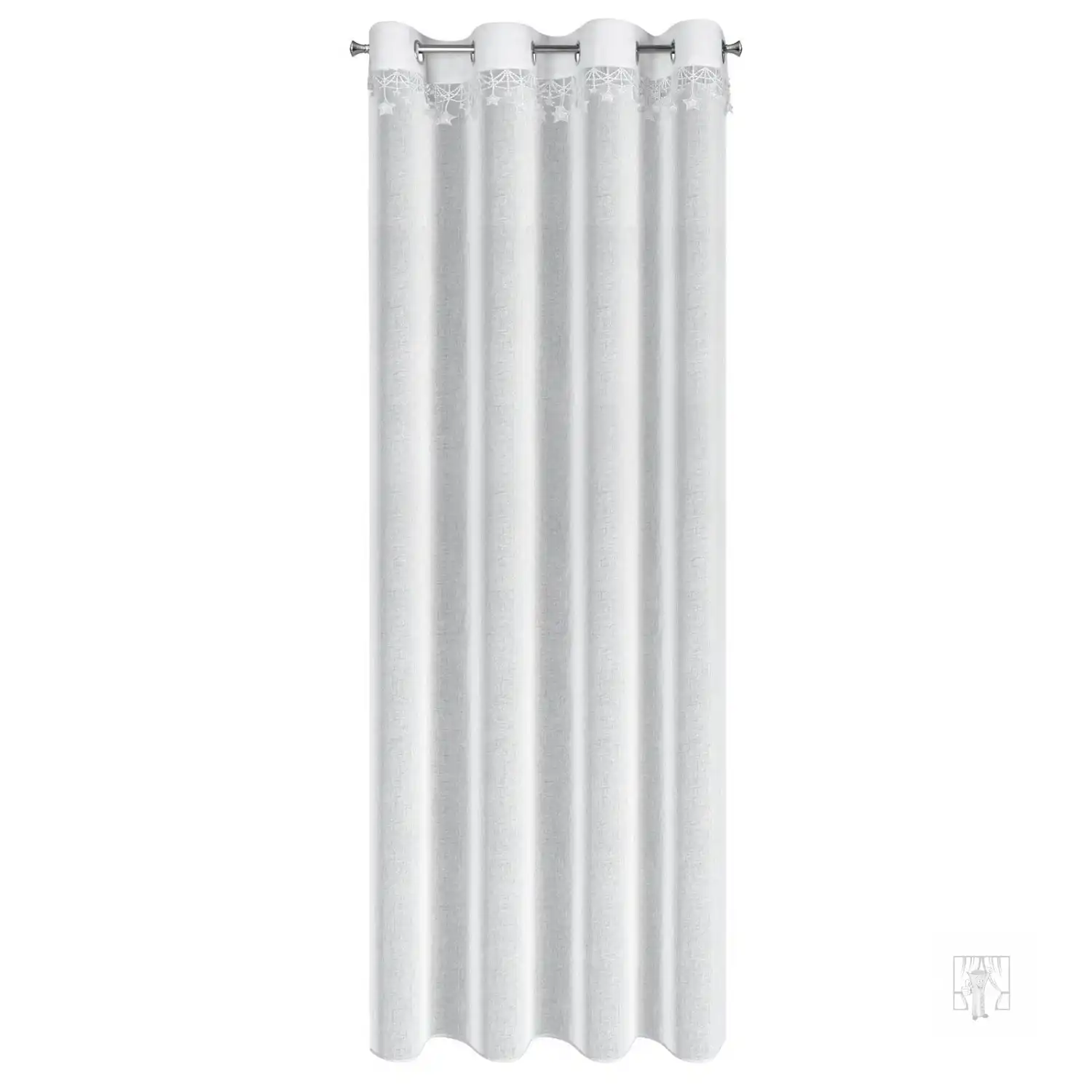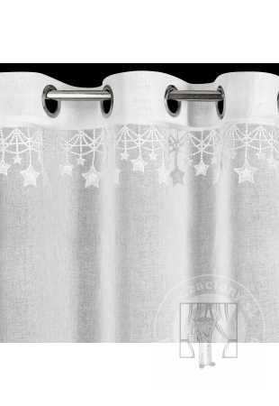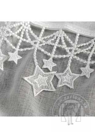 Táto elegantná gázová záclona je perfektnou dekoráciou na sviatky. Ľahká, polopriehľadná látka jemne prepúšťa svetlo a vytvára útulnú atmosféru. Vrchnú časť zdobí vyšívaná aplikácia hviezd, ktorá celému kusu dodáva jedinečné čaro a umocňuje vianočnú atmosféru.