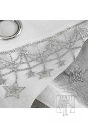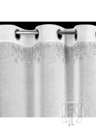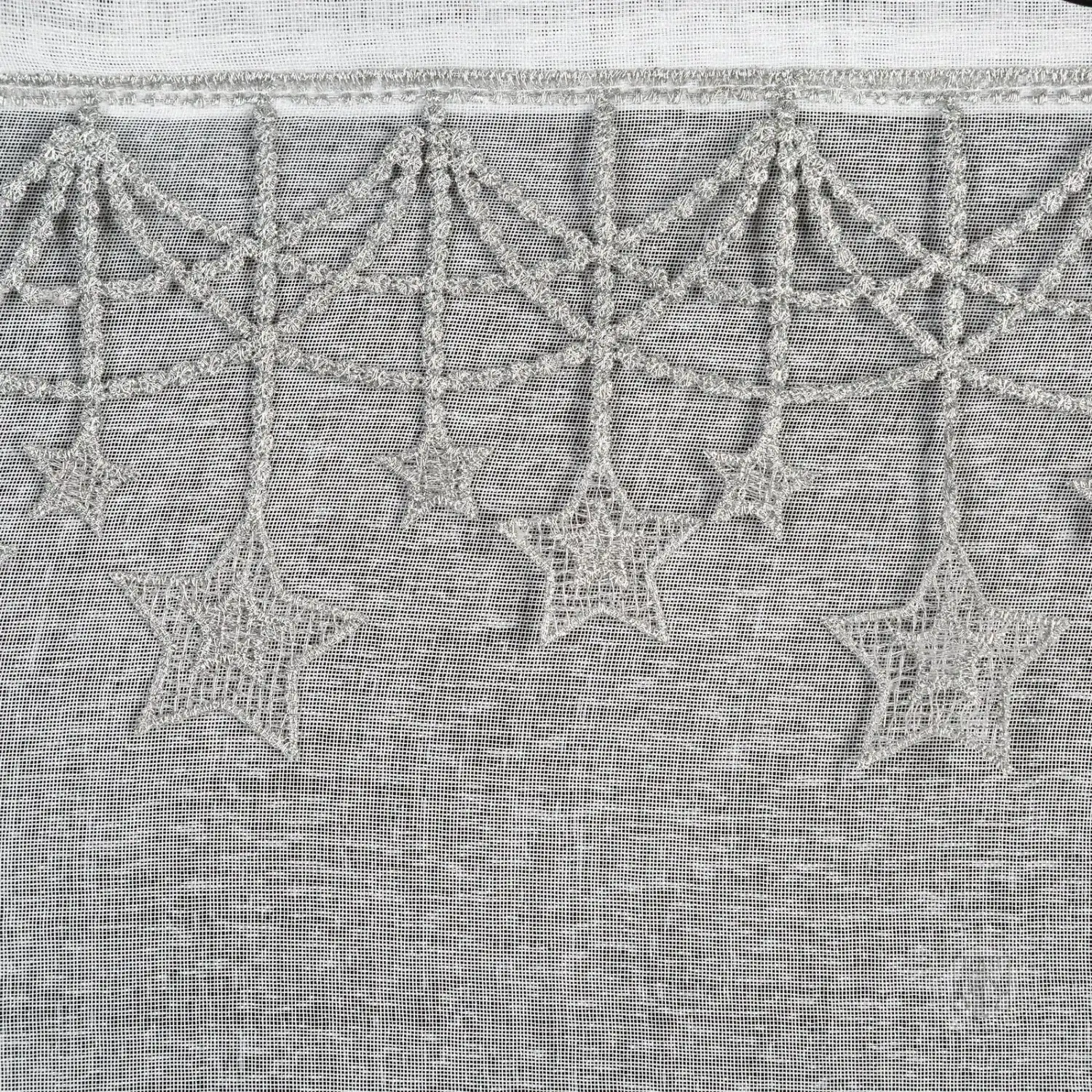 Táto elegantná gázová záclona je perfektnou dekoráciou na sviatky. Ľahká, polopriehľadná látka jemne prepúšťa svetlo a vytvára útulnú atmosféru. Vrchnú časť zdobí vyšívaná aplikácia hviezd, ktorá celému kusu dodáva jedinečné čaro a umocňuje vianočnú atmosféru.