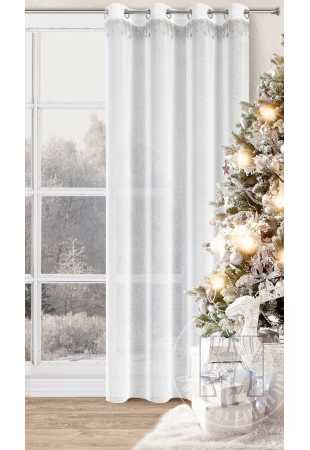 Vianočná záclona XMAS na krúžkoch 140x250cm biela/strieborná