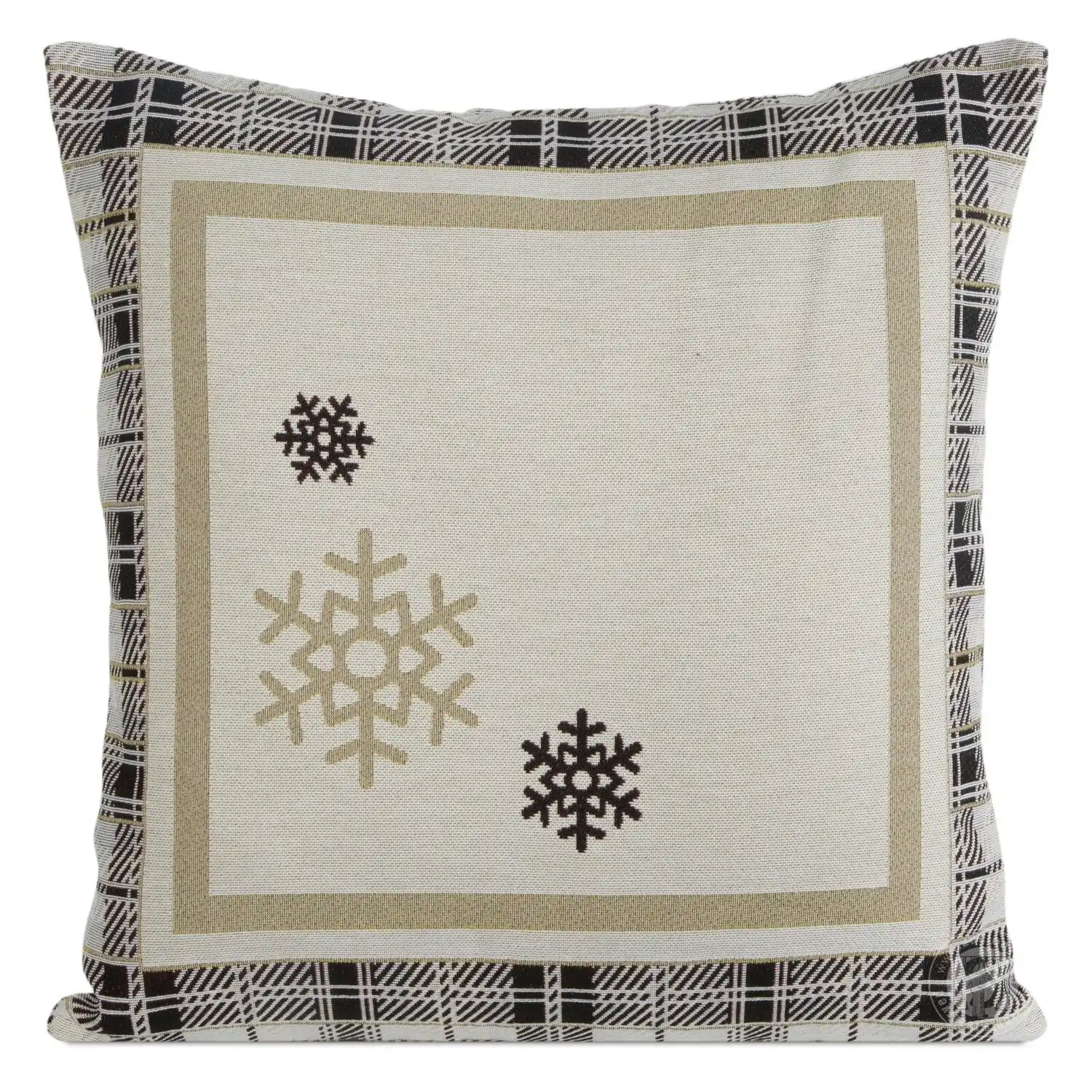 Táto vianočná gobelínová obliečka na vankúš z kolekcie ANGEL, utkaná z hrubej látky s kockovaným vzorom a zlatými snehovými vločkami, je výraznou dekoráciou, ktorá dodá štýl každému interiéru. Hrubšia žakárová látka zaručuje krásny dekoratívny efekt a technika tkania zabezpečuje, že obliečka na vankúš bude vyzerať krásne na pohovke v rustikálnom aj modernom interiéri.