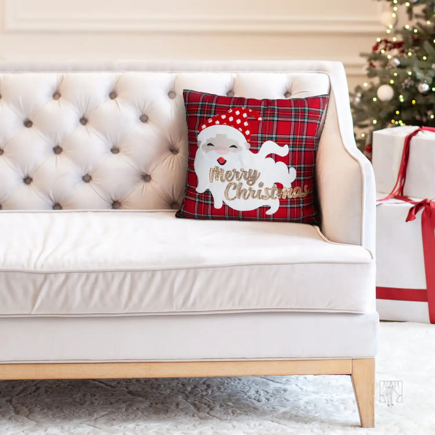 Dodajte svojmu domovu veselý, slávnostný nádych! Táto pôvabná dekoračná obliečka na vankúš s klasickým kockovaným vzorom je ozdobená zábavnou výšivkou Santa Clausa, ktorá vyčarí úsmev na tvári každému členovi domácnosti a hosťovi.