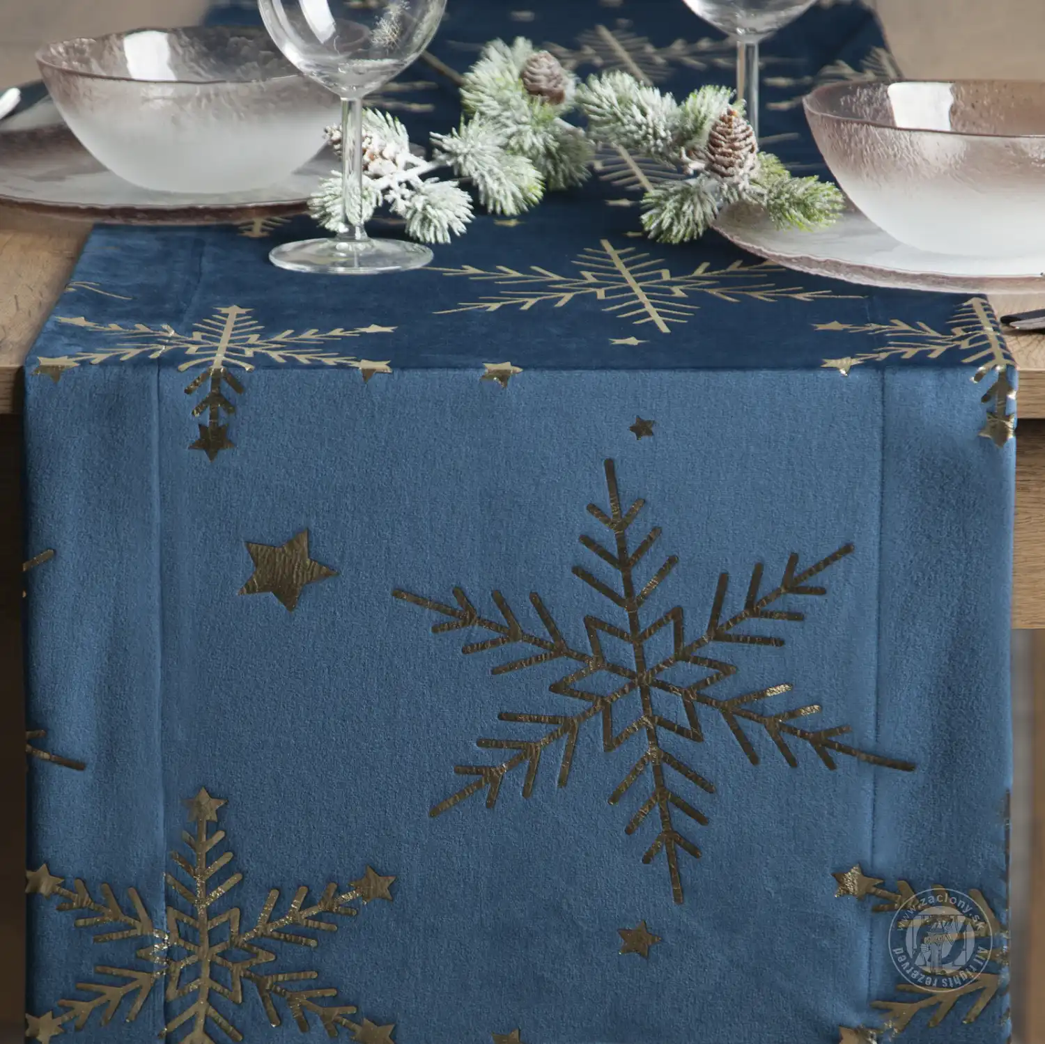 Vytvorte si magickú atmosféru pri svojom sviatočnom stole! Tento jedinečný obrus vyrobený z mäkkej zamatovej látky zaujme svojím jemným leskom a elegantným vzorom trblietavých šampanských snehových vločiek. Každý detail bol navrhnutý tak, aby vášmu aranžmánu dodal luxus a slávnostné čaro.