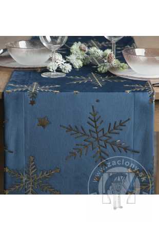Vianočný obrus VLOČKY 40x140cm granátový/zlatý