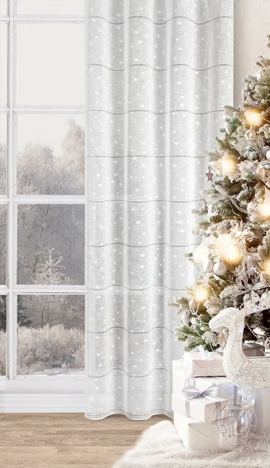 Vianočná záclona NADINE na krúžkoch 140x250cm biela