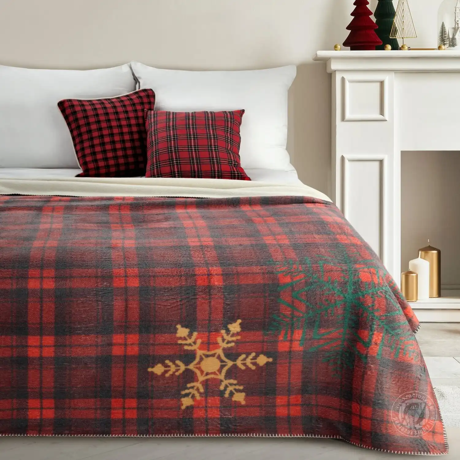 Dodajte svojej sviatočnej výzdobe nádych vianočnej nálady s krásnymi doplnkami! Mäkká deka CHERRY, vyrobená zo zmesi bavlny a akrylu a ozdobená potlačou kombinujúcou kockovaný vzor a motív snehových vločiek, je dekoráciou určenou na skrášlenie Vášho domova na sviatky.