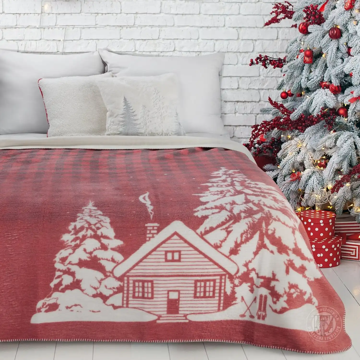 Vylepšite si sviatočnú atmosféru krásnymi doplnkami! Mäkká deka RUDOLF, vyrobená zo zmesi bavlny a akrylu s očarujúcim motívom domčeka, je dekoráciou určenou na skrášlenie Vášho domova na sviatky.