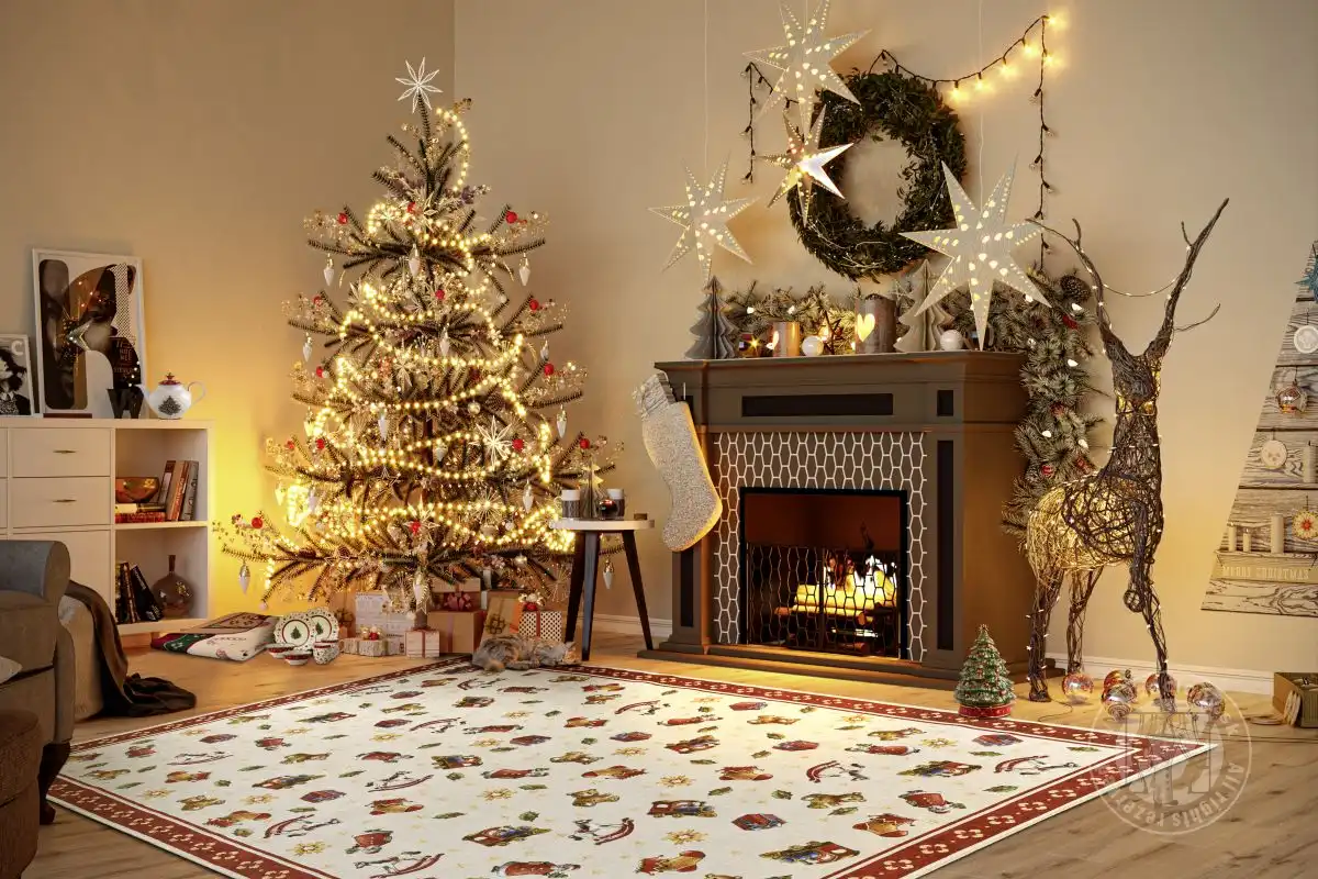 Bezvlasé kusové koberce Villeroy & Boch z kolekcie Toy`s Delight s vianočným motívom si nájdu svoje miesto pri každom vianočnom stromčeku.