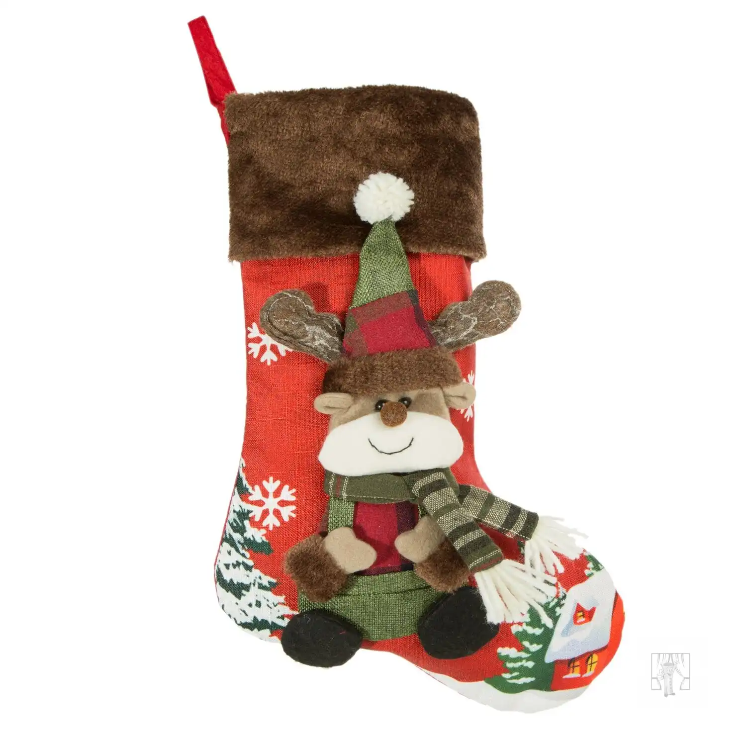 Vianočná ponožka RENNE 28x53cm červená/hnedá