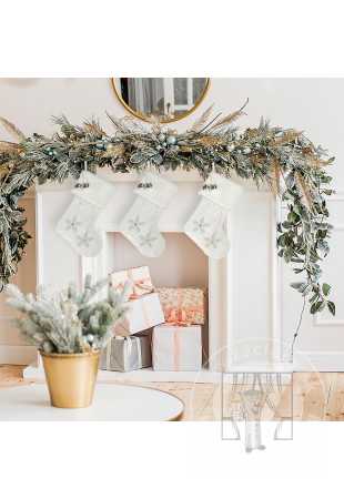 Netrpezlivo čakáte na sviatky? Jedinečná atmosféra Vianoc si vyžaduje špeciálne prostredie. Slávnostný stromček, vence, girlandy a doplnky vnesú teplo a radosť do každého interiéru. Táto výrazná darčeková pančucha s vyšívanými snehovými vločkami, vyrobená z mäkkej látky, poteší najmä najmenších členov Vašej domácnosti. Obzvlášť pozoruhodné sú malé zvončeky zdobiace pančuchu.