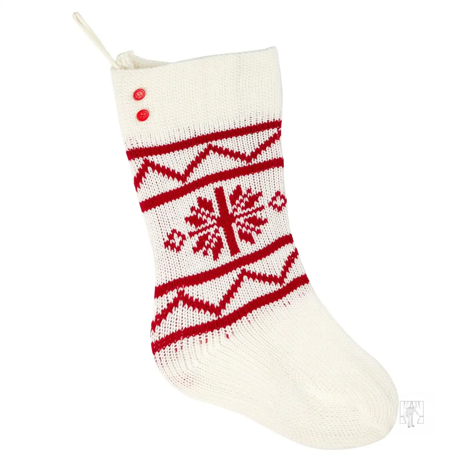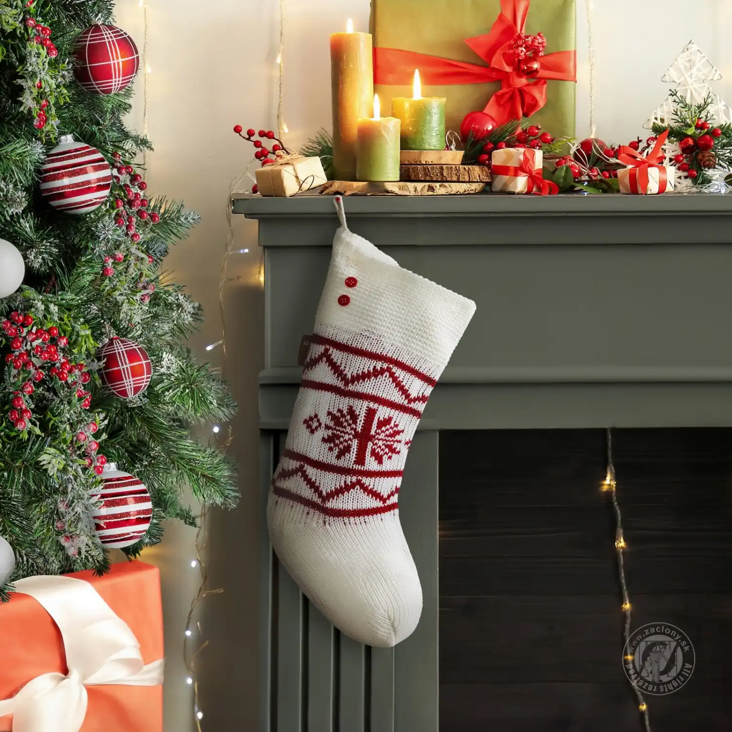Očarujúca vianočná pančucha vyrobená z mäkkej pleteniny s červeno-bielym geometrickým vzorom bude krásne vyzerať na krbovej rímse a kdekoľvek inde v domácnosti. Vianočná pančucha je očarujúca tradícia, ktorá dodáva vianočnému obdobiu kúzlo a radosť, najmä pre deti, ktoré netrpezlivo očakávajú, čo nájdu vo svojich pančuchách na Štedrý deň.