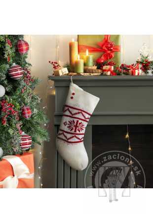 Vianočná ponožka so vzorom 25x50cm biela/červená