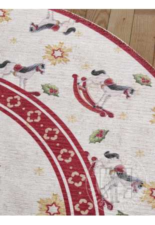 Bezvlasé kruhové kusové koberce Villeroy & Boch Toy´s Delight z limitovanej edície vyčarujú útulnú vianočnú atmosféru pod každým vianočným stromčekom. Sú vyrobené zo 100% polyesteru a ich povrch netvorí klasický vlas, ale potlač. Vďaka tomuto materiálu sú tieto vianočné koberce príjemné na dotyk a ľahko sa čistia. Prinášajú hravé motívy a vysokokvalitné spracovanie. Na spodnej strane majú protišmykovú úpravu, ktorá zaisťuje, že lepšie držia na svojom mieste. Koberce mjaú certfikát OEKO-TEX Standard 100, ktorý zaručuje ekologický výrobný proces a absenciu škodlivých látok.