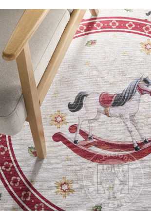 Kruhový kusový koberec Villeroy & Boch Toy`s Delight Limited Edition 106275 Cream Red, bez vlasu