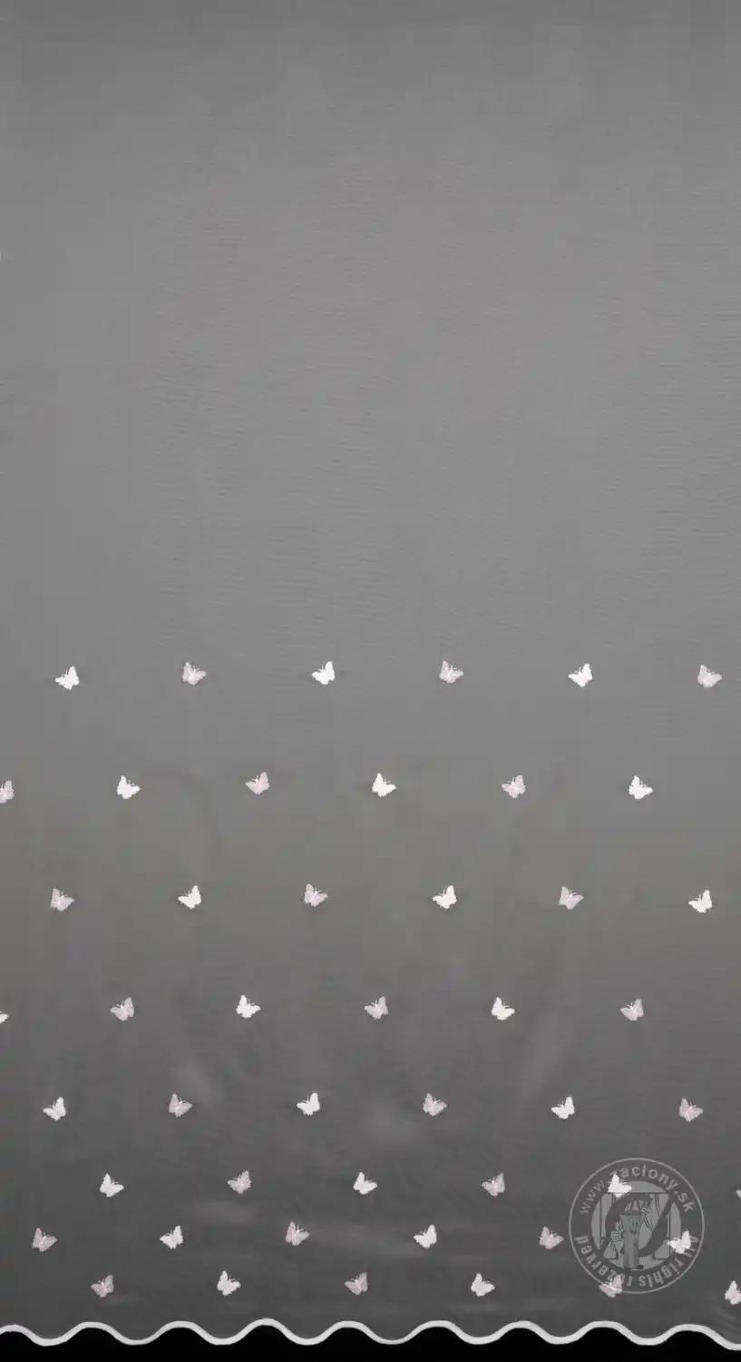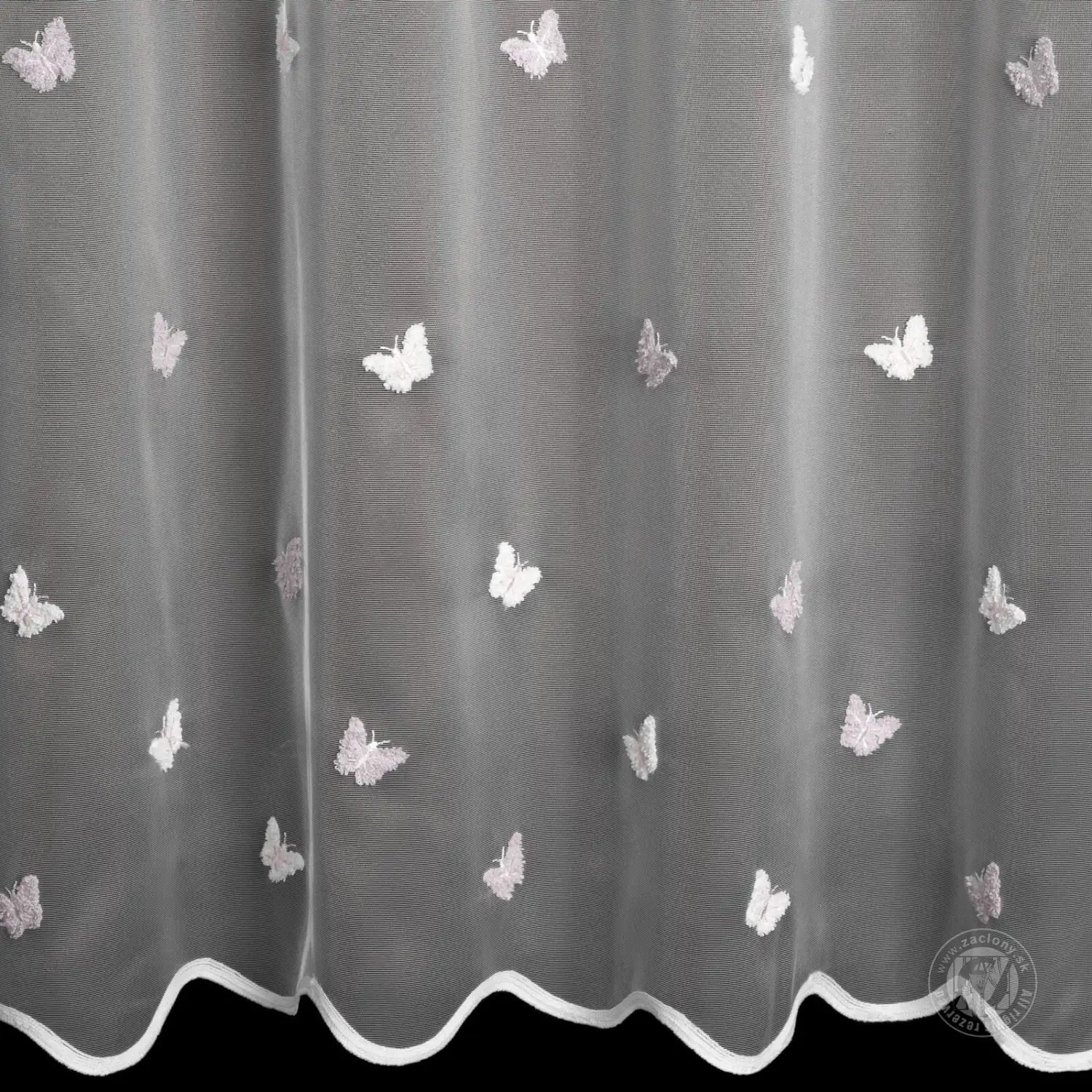 Záclona metráž 18706 biela/ružová s motýlikmi 300cm