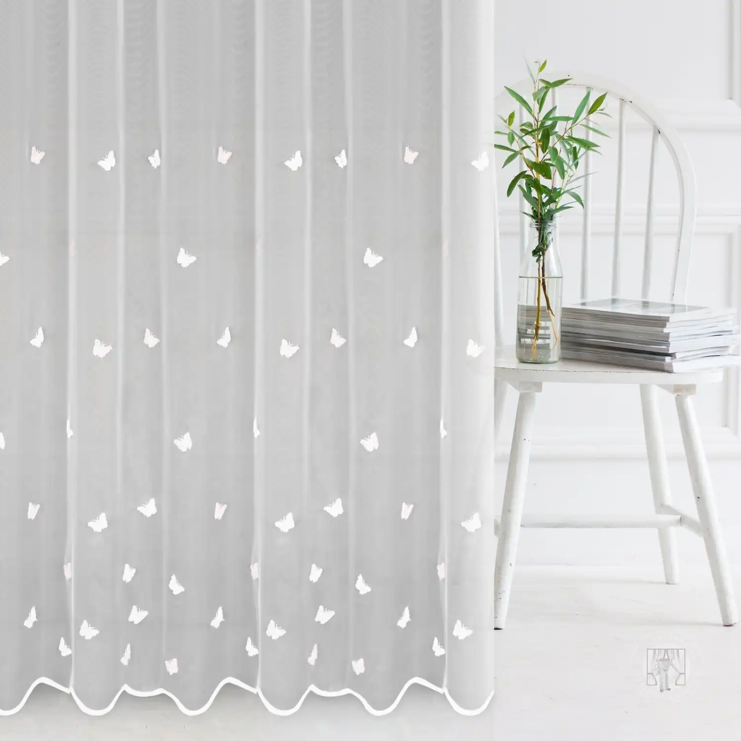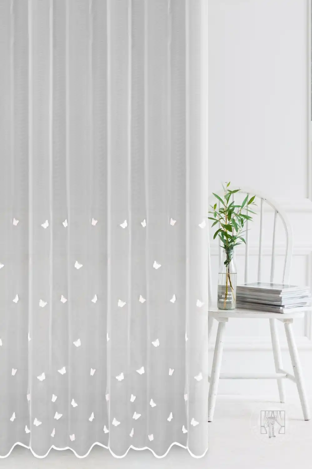 Splývavá a ľahká látka v snehobielom odtieni, ozdobená pôvabnou detskou aplikáciou a výšivkou v spodnej časti. Táto elegantná látka krásne splýva a vyzerá skvele so závesmi aj samostatne, bez akýchkoľvek doplnkov. Snehobiely odtieň prináša do miestnosti nádych ľahkosti a sviežosti a jemne ju zdobí. Detsky prívetivý motív motýľa je vhodný najmä do detských izieb.