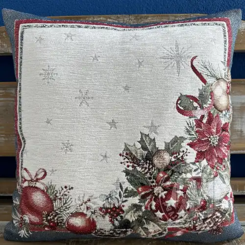 Táto vianočná gobelínová obliečka na vankúš utkaná z hrubej látky je výraznou dekoráciou, ktorá dodá štýl každému interiéru. Hrubšia žakárová látka zaručuje krásny dekoratívny efekt a technika tkania zabezpečuje, že obliečka na vankúš bude vyzerať krásne na pohovke v rustikálnom aj modernom interiéri.
