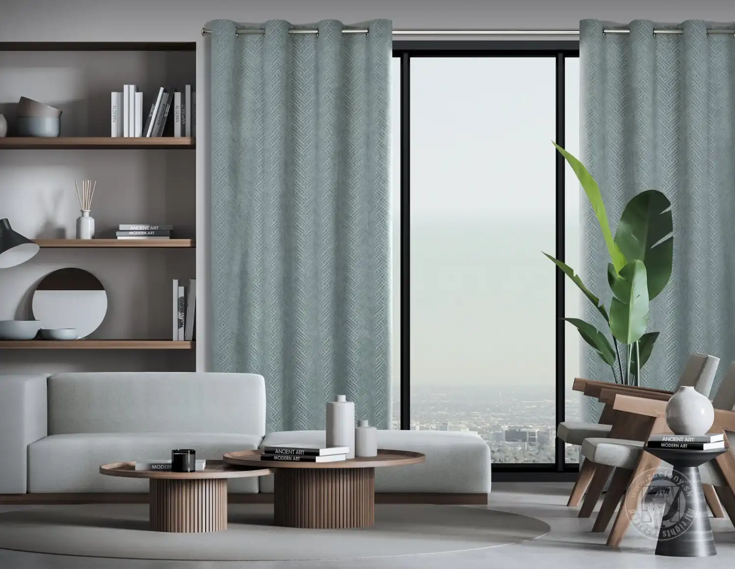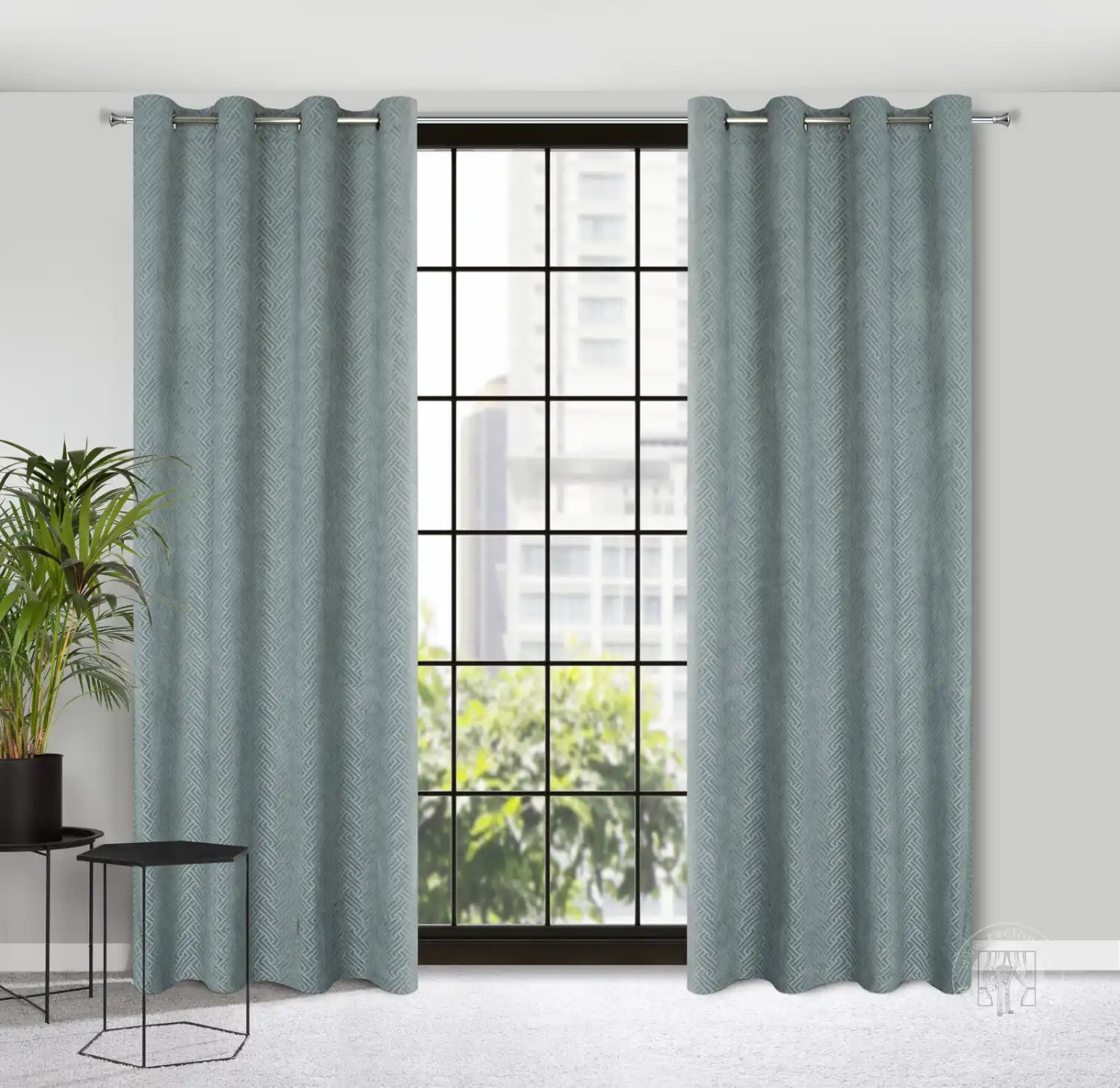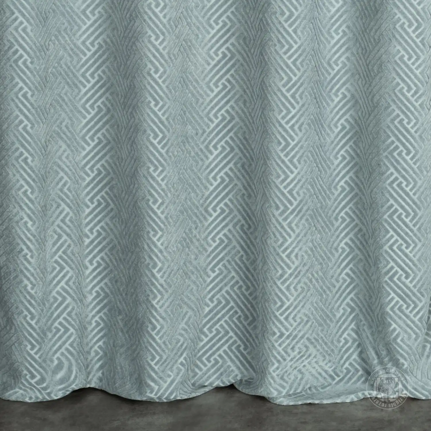 Záves ISLA vyrobený z matného zamatu láka svojou jemnosťou a prelamovaným geometrickým vzorom. Geometrický žakárový vzor na látke bol vytvorený technikou tkania. Jemná jemnosť, výrazný lesk a jednotná farebná schéma robia z tohto doplnku ideálny do interiérov zariadených v módnom, glamour štýle. Praktické očká uľahčujú zmenu dekorácie. Hrubší vzor je prekladaný tenšími, priehľadnými prvkami, čím vytvára zaujímavý prelamovaný efekt na okne.č.