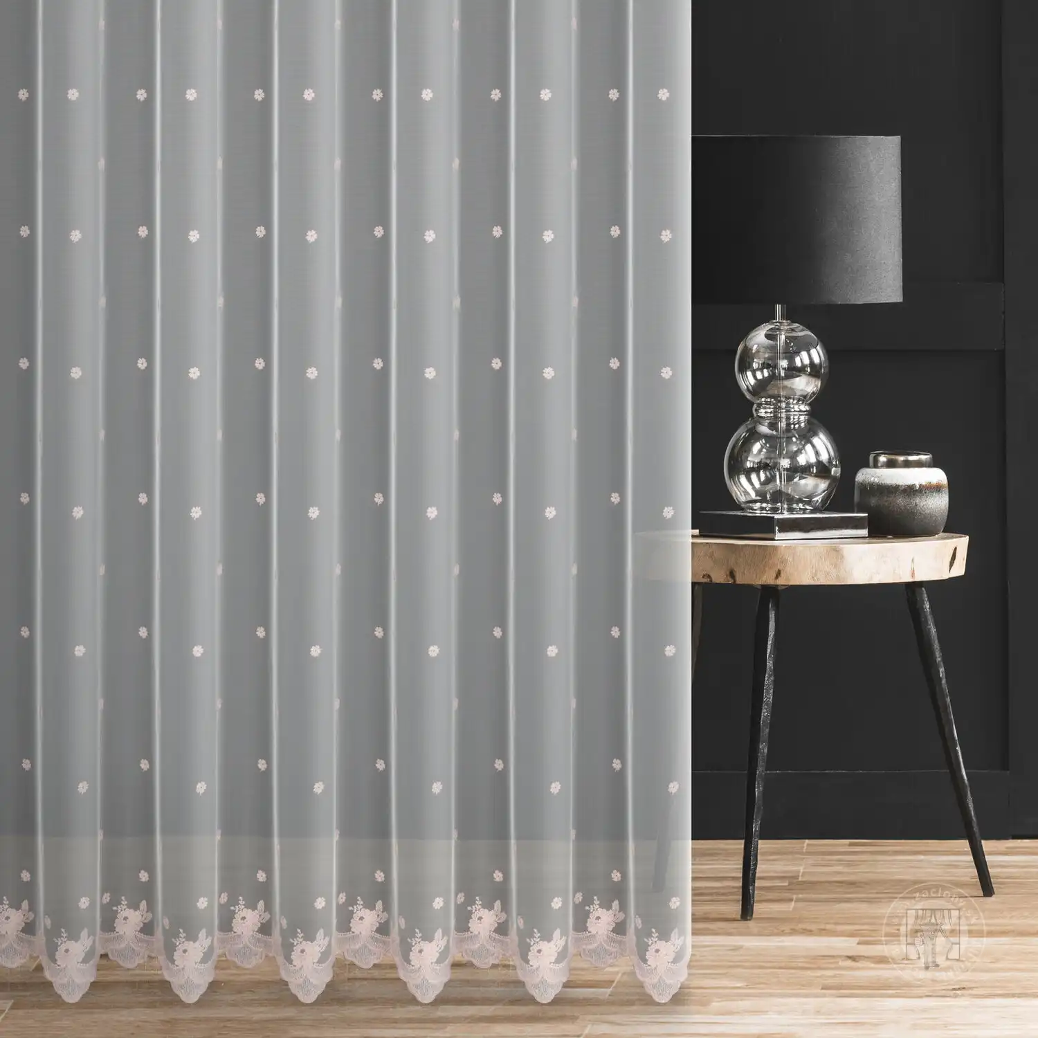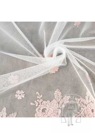 Záclona tylová s výšivkou kvetov – jemná a vzdušná metráž na záclony do obývačky aj spálne. Kvetinový vzor krásne prepúšťa svetlo, zjemní okno a dodá interiéru romantický štýl.
