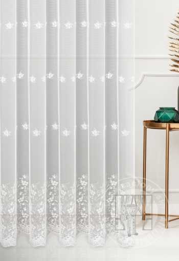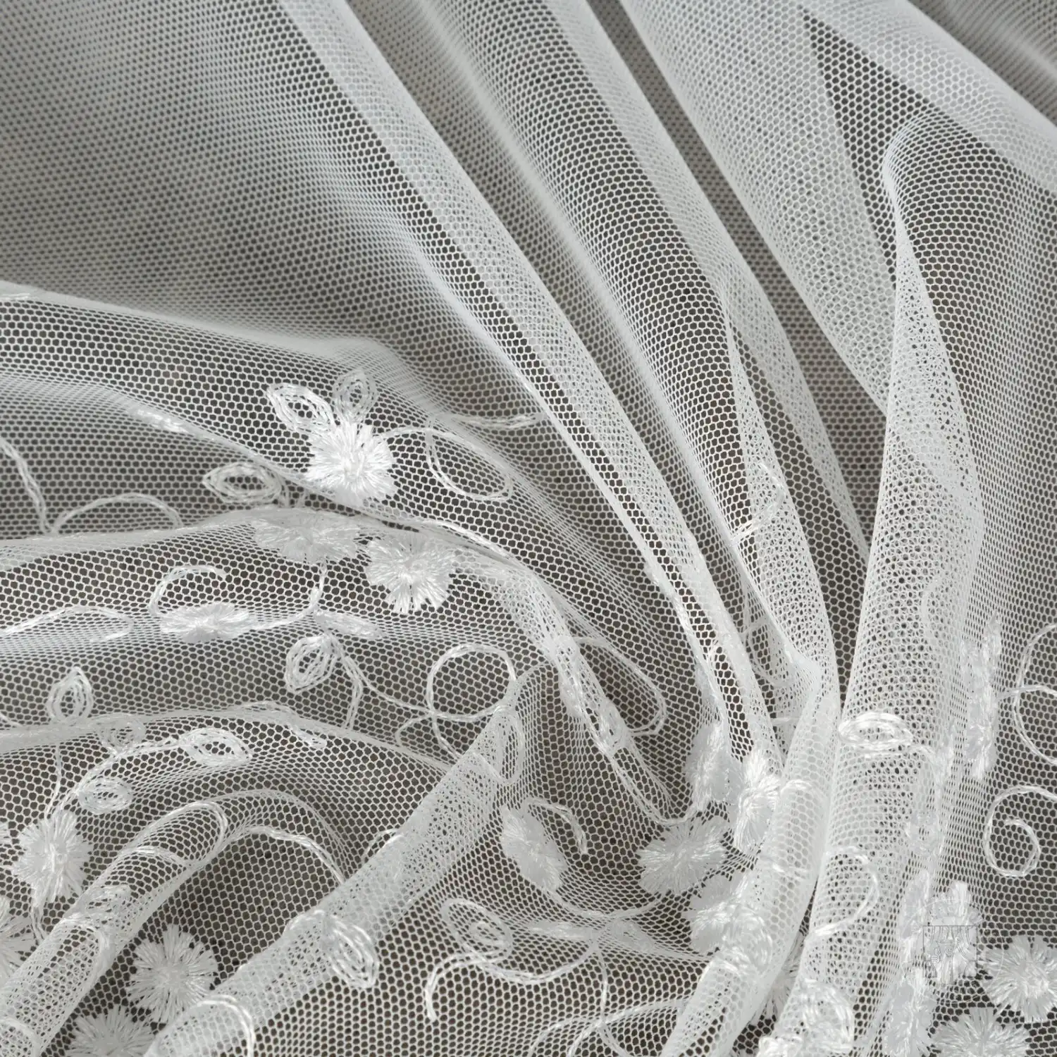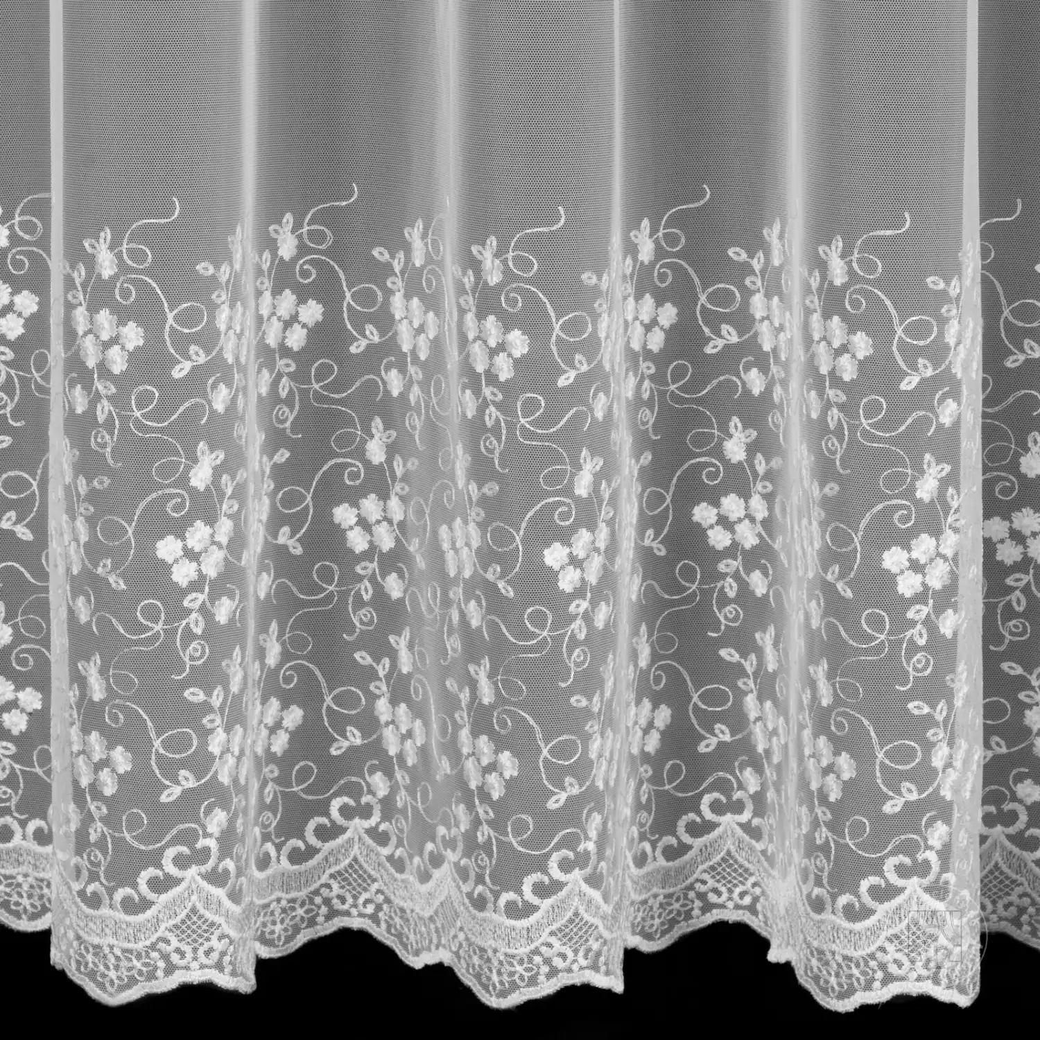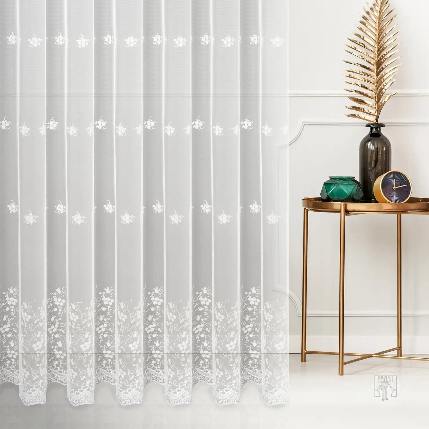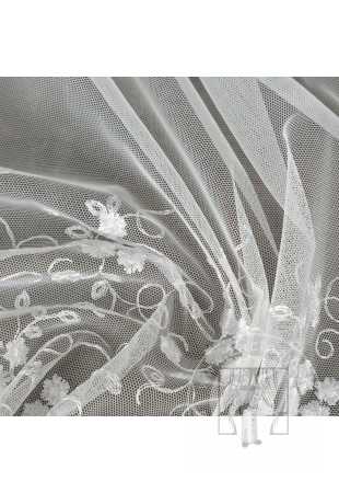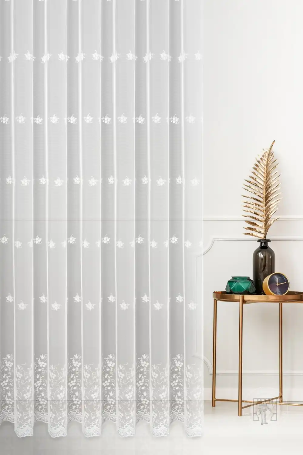 Záclonová látka s kvetinovou výšivkou – jemná a vzdušná metráž na záclony do obývačky aj spálne. Krásne prepúšťa svetlo, zjemní okno a dodá interiéru romantický, elegantný štýl.