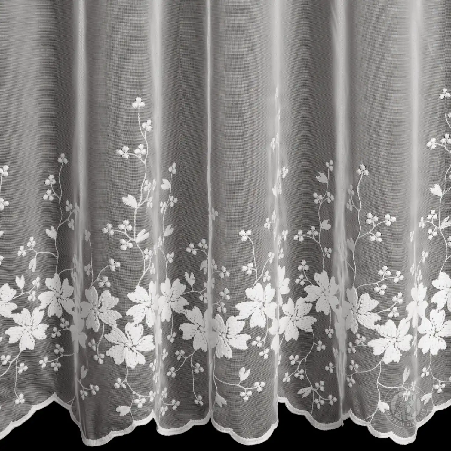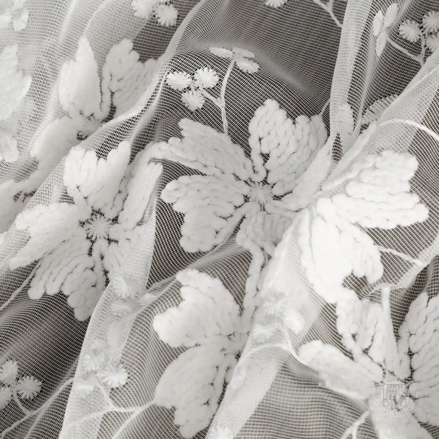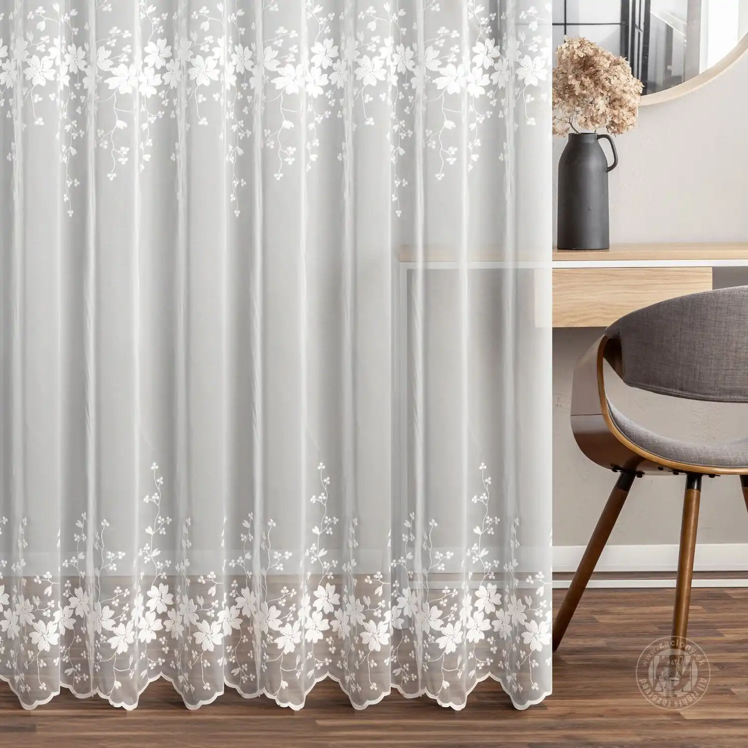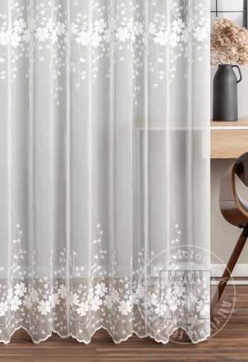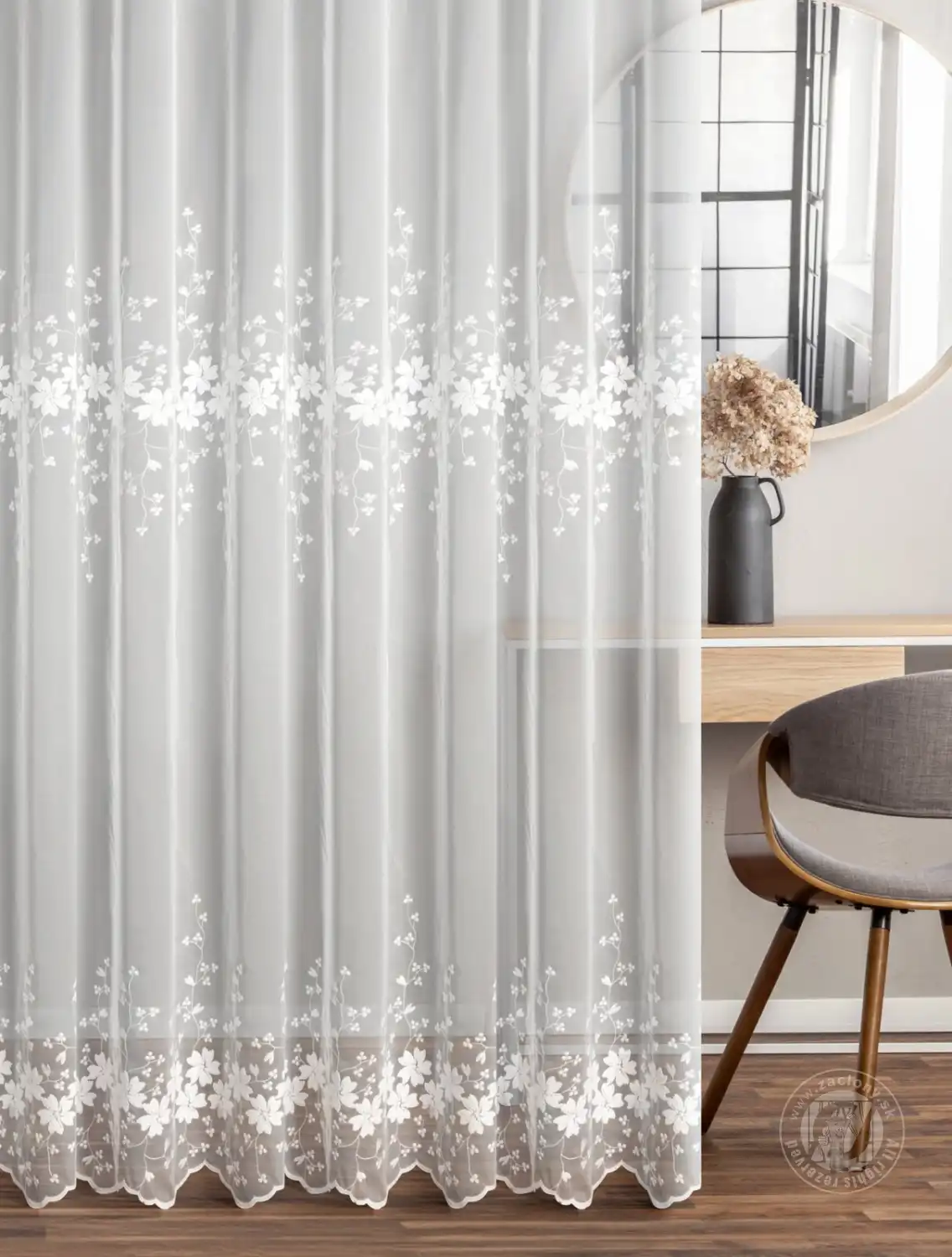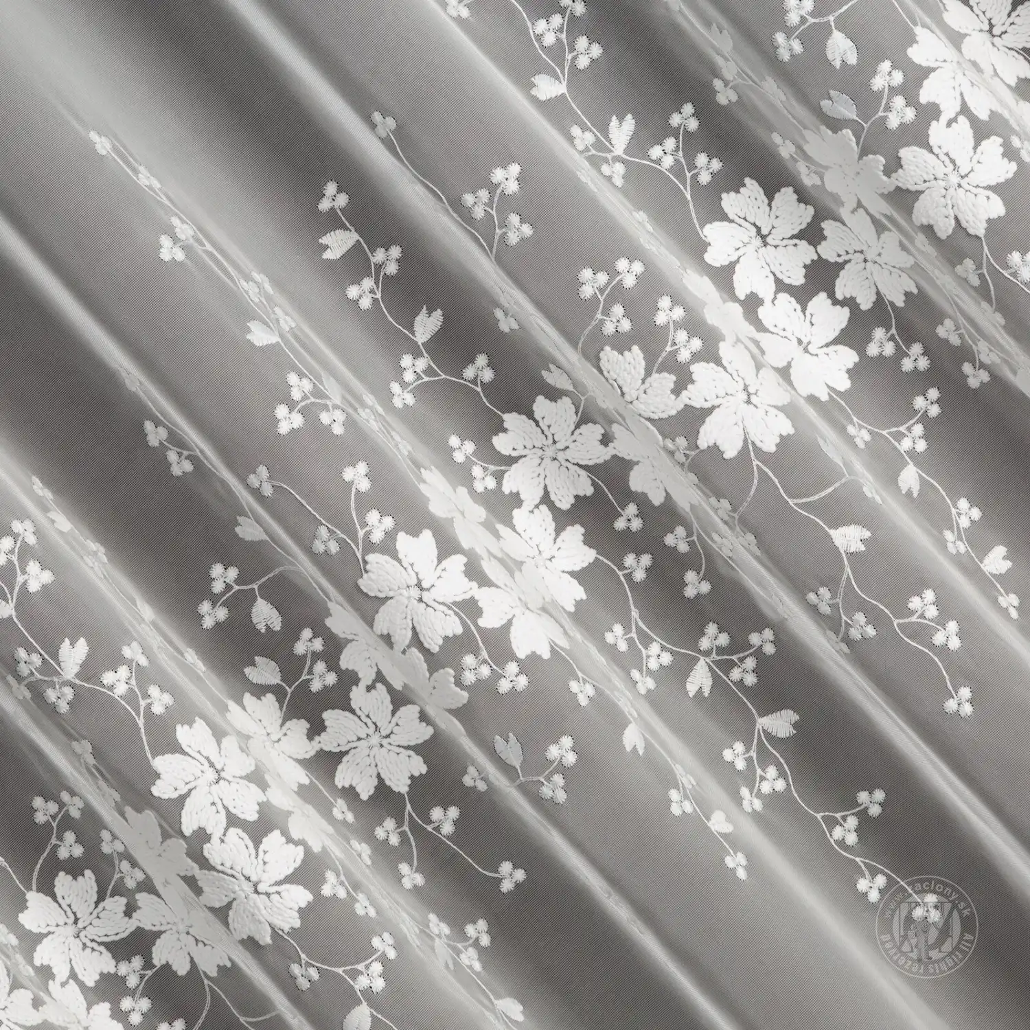 Záclona s výšivkou kvetov – jemná a vzdušná metráž na záclony do obývačky aj spálne. Kvetinový vzor krásne prepúšťa svetlo, zjemní okno a dodá interiéru romantický štýl.