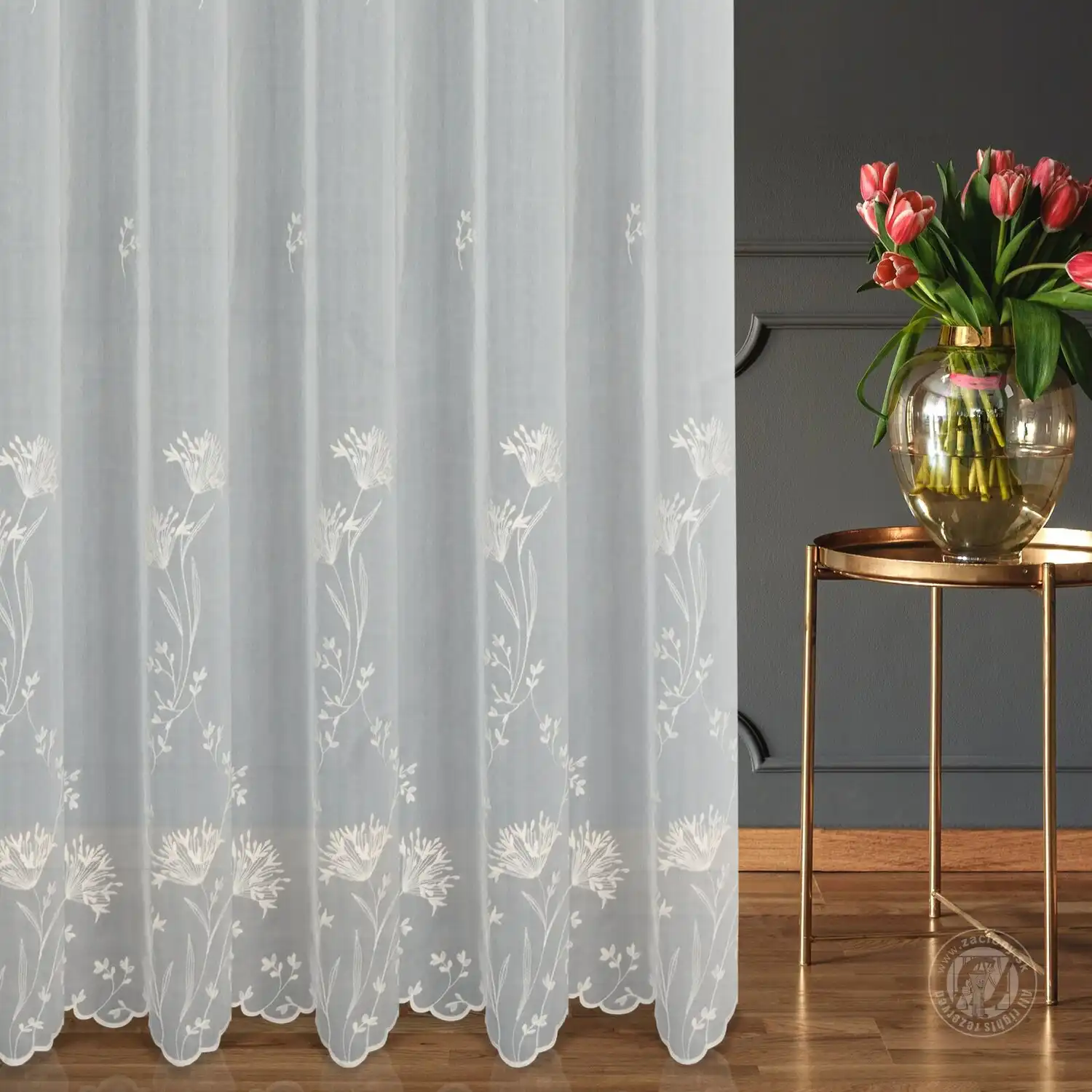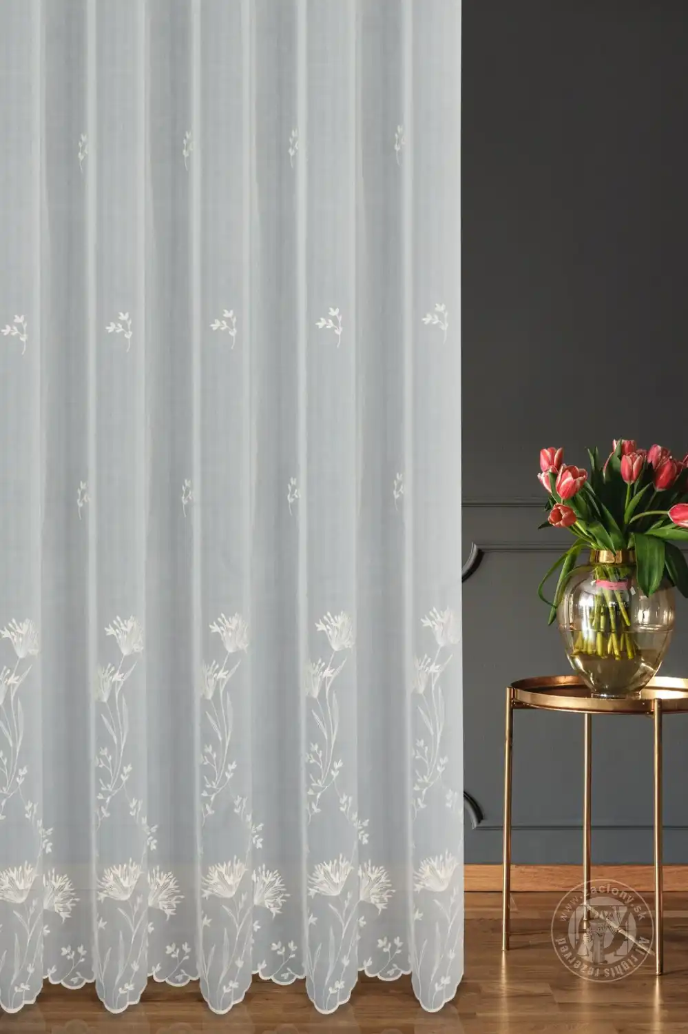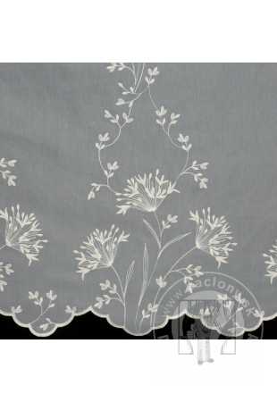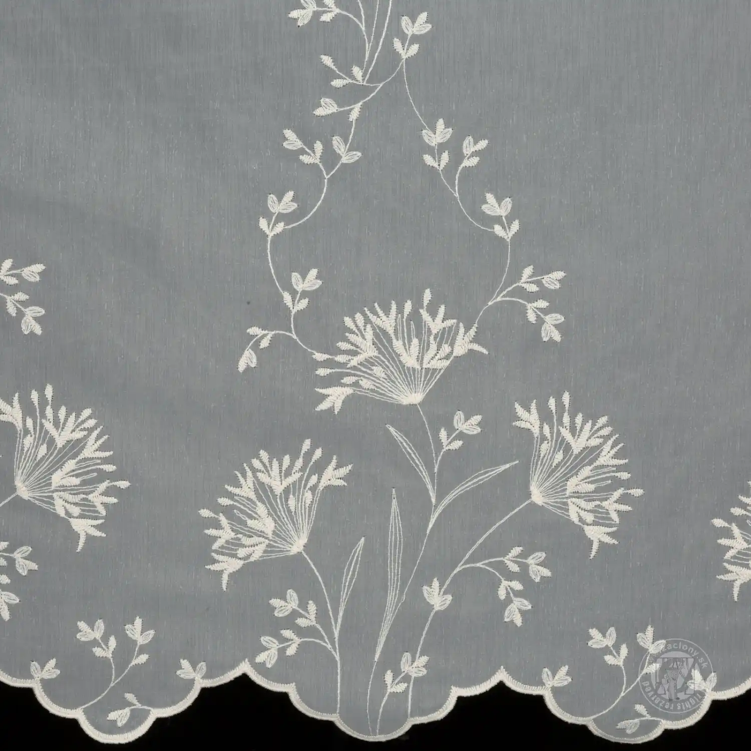 Táto záclona je ozdobená jemnou výšivkou vetvičiek a na leme je zakončená jemným vlnovým vzorom. Látka jemne tieni okno pred nadmerným slnečným žiarením, vďaka čomu sa odporúča najmä do slnečných miestností. Bude vyzerať krásne v klasických, retro alebo rustikálnych interiéroch.
