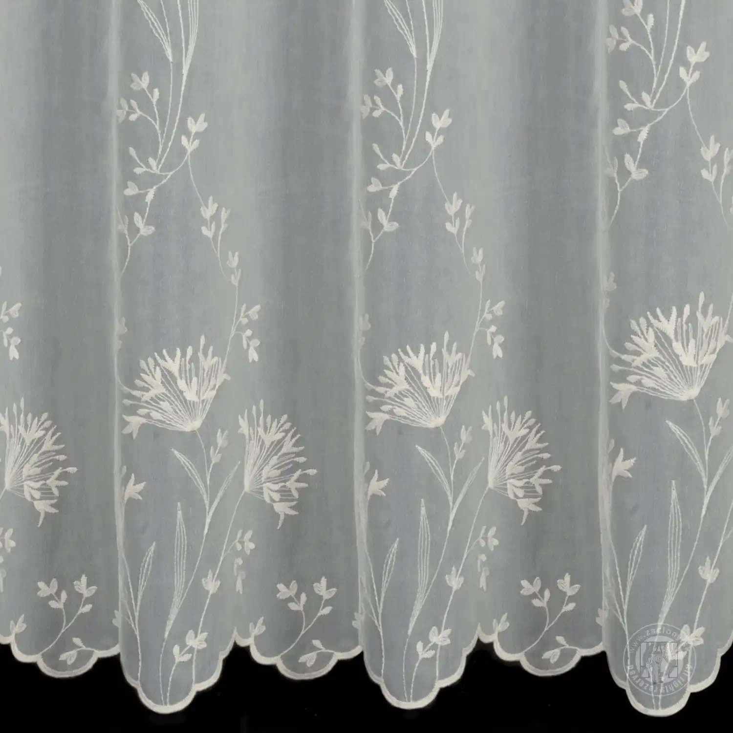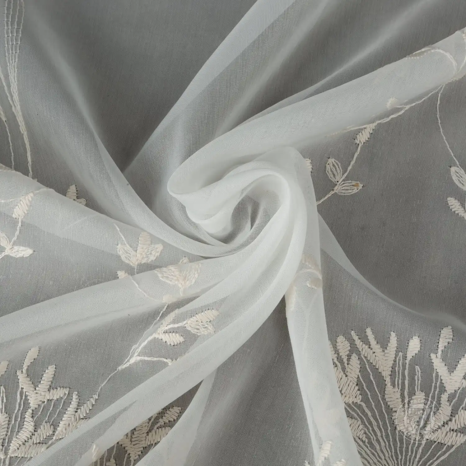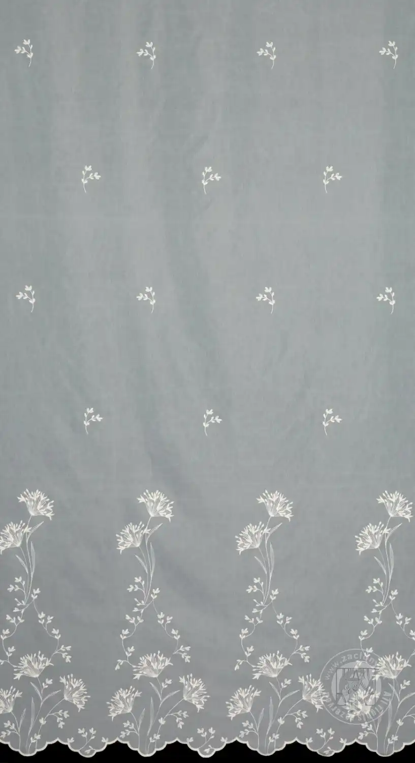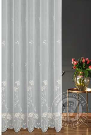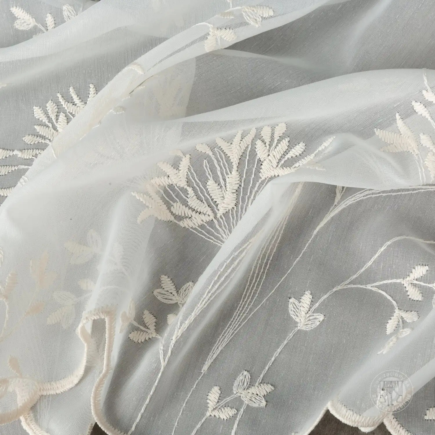Táto záclona je ozdobená jemnou výšivkou vetvičiek a na leme je zakončená jemným vlnovým vzorom. Látka jemne tieni okno pred nadmerným slnečným žiarením, vďaka čomu sa odporúča najmä do slnečných miestností. Bude vyzerať krásne v klasických, retro alebo rustikálnych interiéroch.