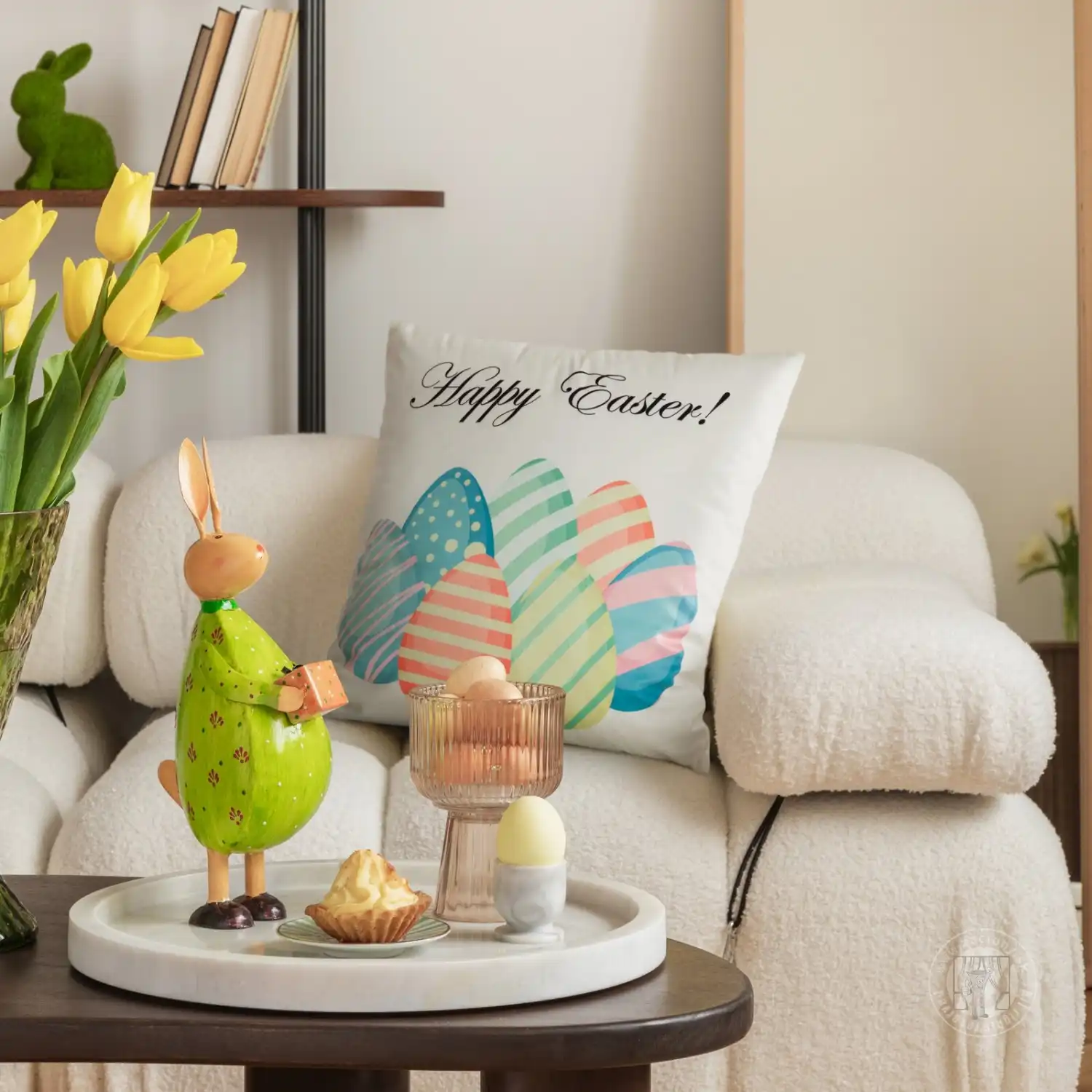 Obliečka na vankúš má skrytý zips, ktorý zaisťuje esteticky príjemný vzhľad a pohodlné používanie. Je to perfektný doplnok do vašej obývačky, spálne alebo jedálne na sviatky a dodá jemný nádych veľkonočnej radosti.