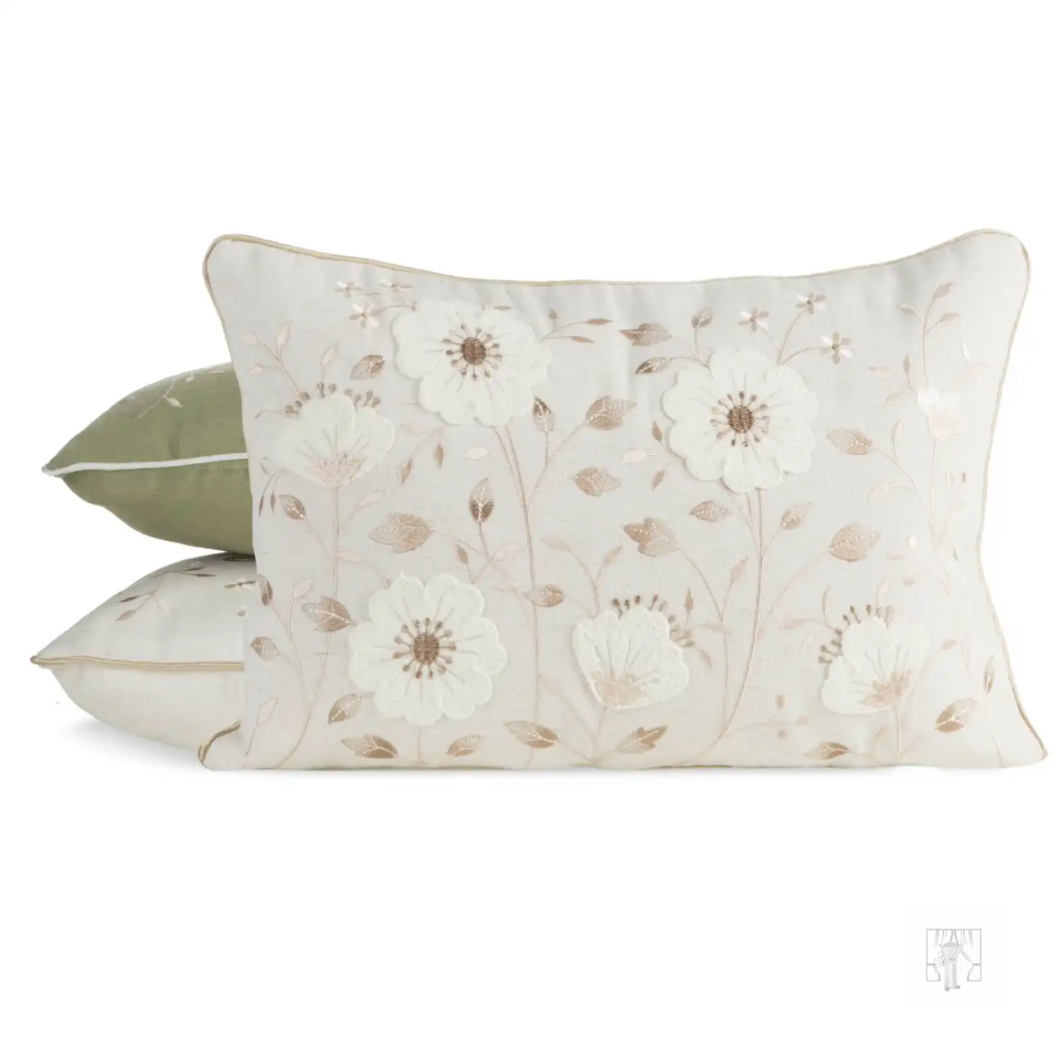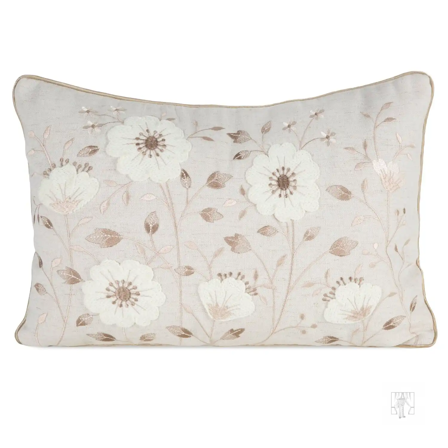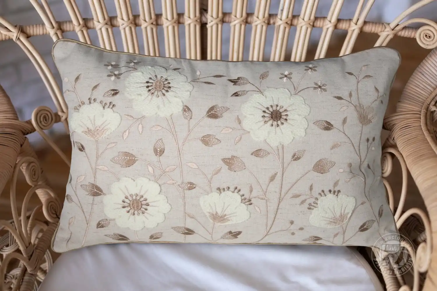 Táto elegantná dekoračná obliečka na vankúš je vyrobená z vysoko kvalitnej látky s prírodnou väzbou, matným povrchom a príjemnou zmesou polyesterových, bavlnených a ľanových vlákien. Zdobená jemnou jarnou kvetinovou výšivkou dodá každej miestnosti ľahký a svieži pocit.