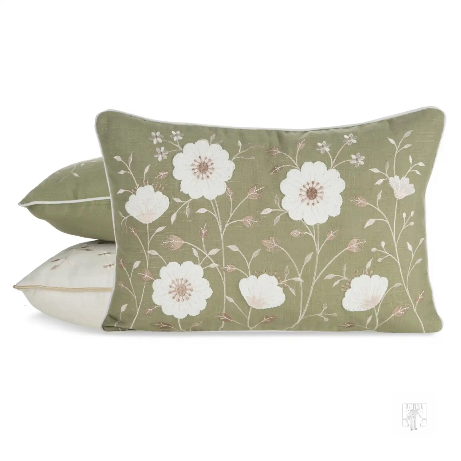 Táto elegantná dekoračná obliečka na vankúš je vyrobená z vysoko kvalitnej látky s prírodnou väzbou, matným povrchom a príjemnou zmesou polyesterových, bavlnených a ľanových vlákien. Zdobená jemnou jarnou kvetinovou výšivkou dodá každej miestnosti ľahký a svieži pocit.
