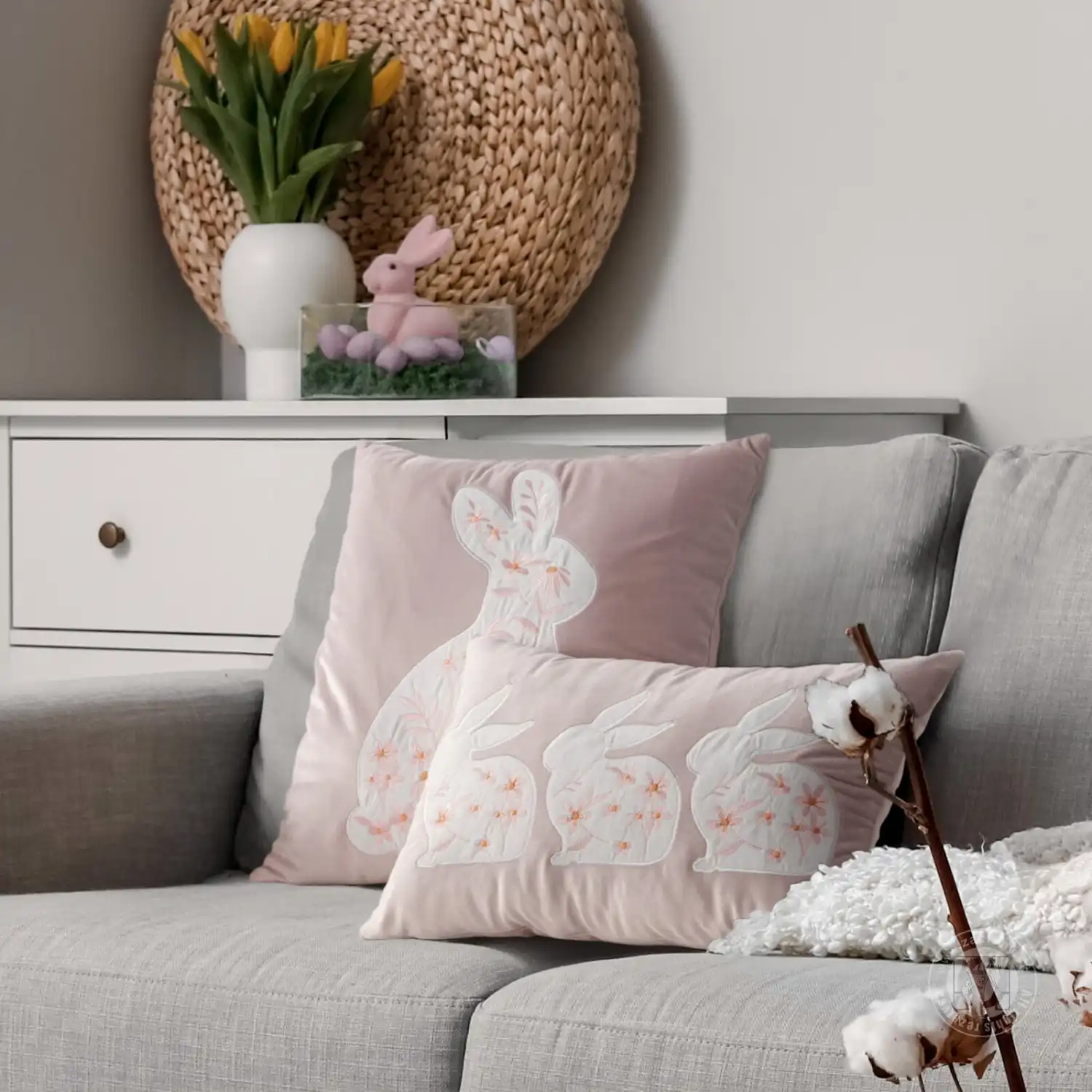 Obliečka na vankúš má skrytý zips, ktorý zaisťuje esteticky príjemný vzhľad a jednoduché používanie. Je perfektným doplnkom do každej obývačky, spálne alebo jedálne na sviatky a dodá jemný nádych veľkonočnej radosti.