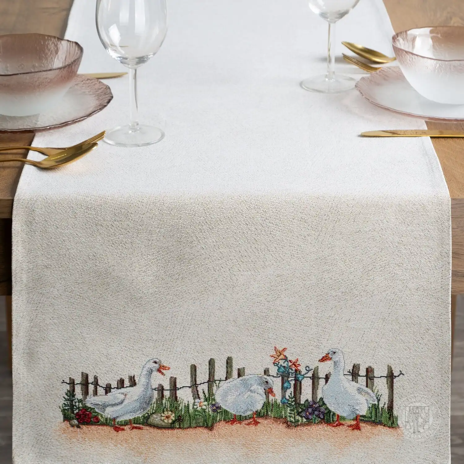 Obrus vyrobený z hrubej gobelínovej látky a zdobený jarným vzorom je dekoráciou pripomínajúcou retro štýl. Vysokokvalitná látka, ktorá je zmesou polyesterových a bavlnených vlákien, sa ľahko udržiava a nekrčí sa. Starostlivé spracovanie zaručuje spokojnosť s výrobkom.