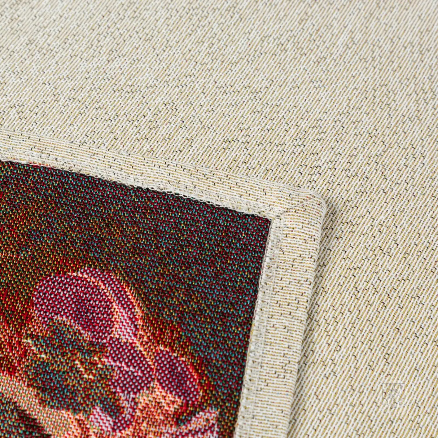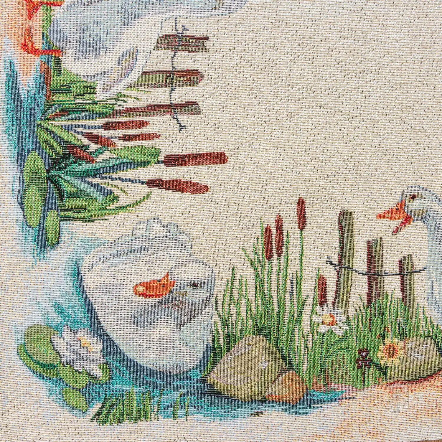 Obrus vyrobený z hrubej gobelínovej látky a zdobený jarným vzorom je dekoráciou pripomínajúcou retro štýl. Vysokokvalitná látka, ktorá je zmesou polyesterových a bavlnených vlákien, sa ľahko udržiava a nekrčí sa. Starostlivé spracovanie zaručuje spokojnosť s výrobkom.