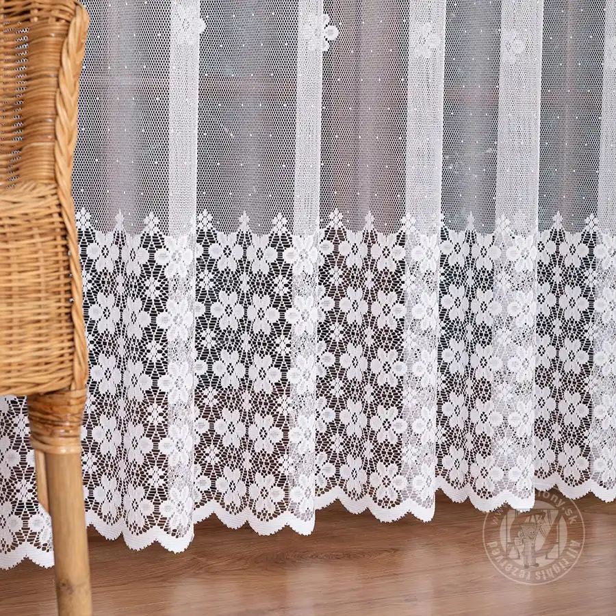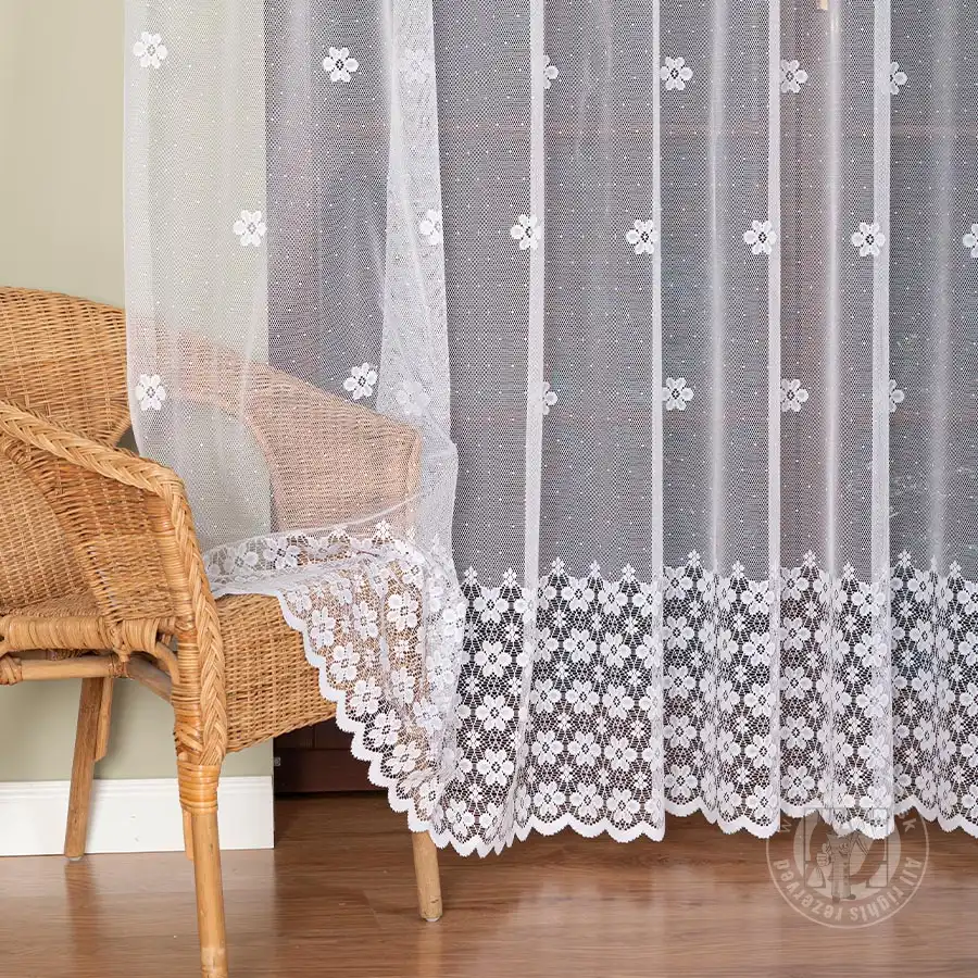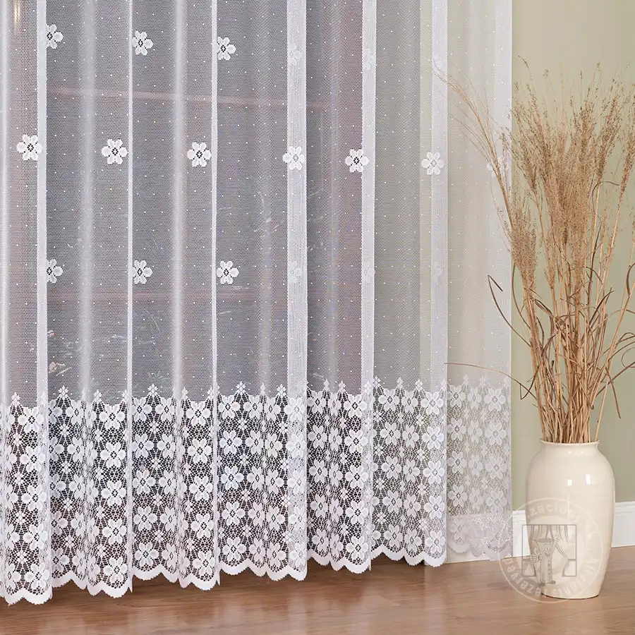 Metrážová záclona vyrobená zo žakaru, ktorá vyniká svojim vzorom ťahajúcim sa pozdĺž celej záclony. Žakárové záclony vyzerajú skvelo v oknách obývačky alebo spálne umiestnenej v dome, byte, či chalupe namä počas jarného alebo letného obdobia. Táto záclona taktiež sĺňa náročné kritériá dnešných trendov interiérovej architektúry. Záclona sa ľahko udržuje, je tvarovo stála a nežltne.