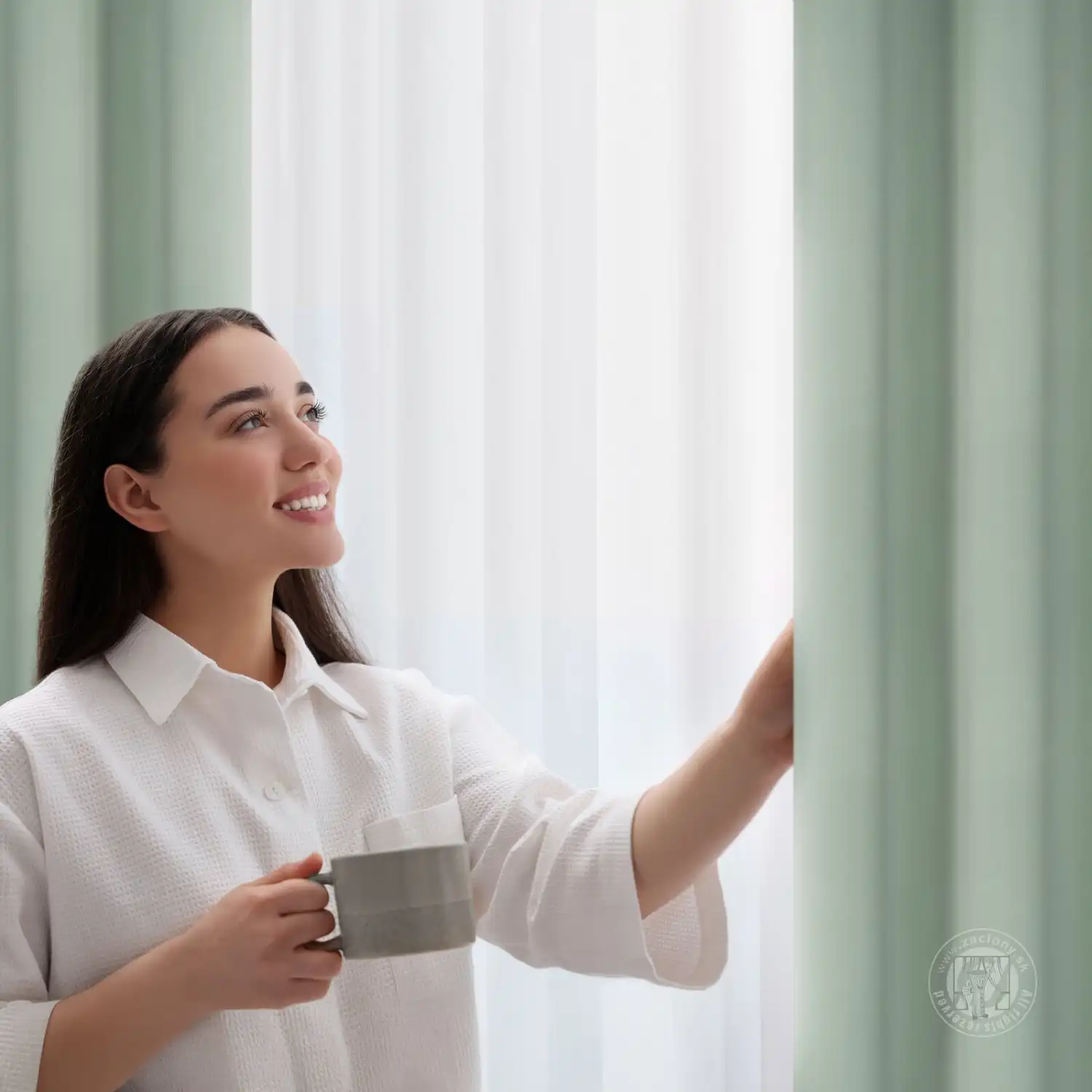 Hotové zatemňovacie závesy sú perfektným riešením pre tých, ktorí hľadajú rovnováhu medzi funkčnosťou a estetikou. Táto látka mierne znižuje množstvo svetla vstupujúceho do miestnosti a zároveň zaisťuje súkromie a pohodlie. Jej hladký, jednofarebný povrch jej dodáva elegantný a všestranný vzhľad, ktorý sa ľahko prispôsobí rôznym štýlom interiérového dizajnu.