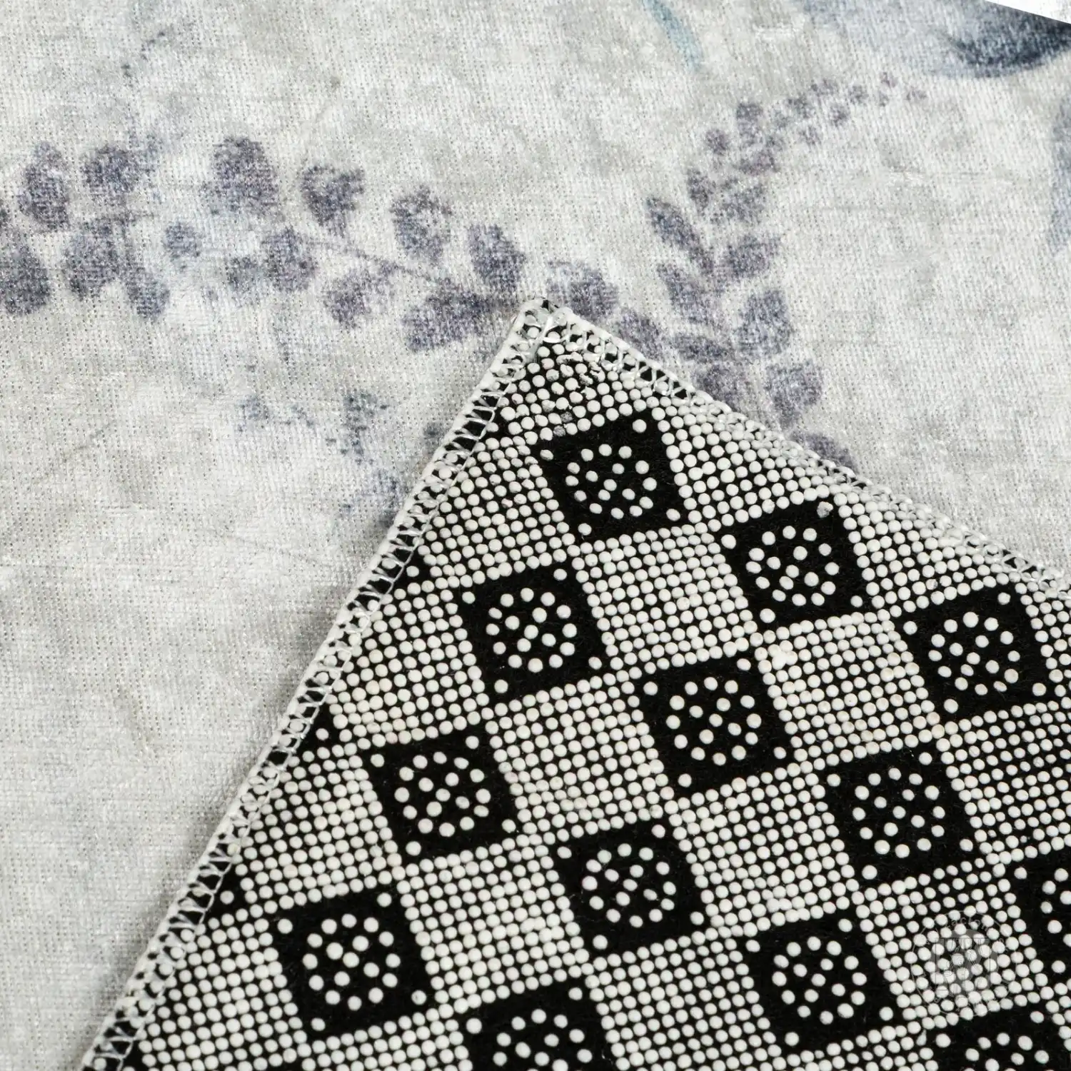 Zadná strana koberca je pokrytá protišmykovou vrstvou s geometrickou potlačou, ktorá zlepšuje stabilitu koberca na podlahe a zabraňuje jeho kĺzaniu.