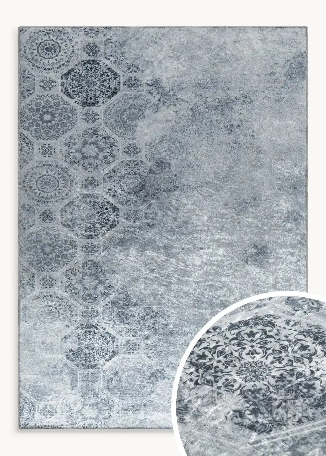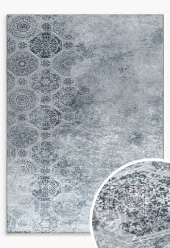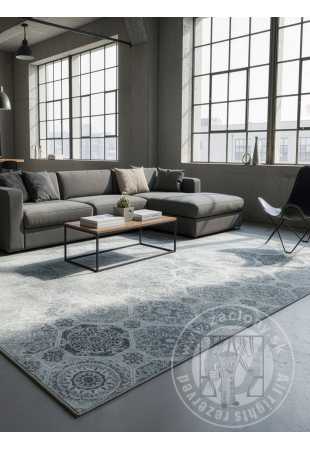 Dekoratívny koberec s jemným ornamentálnym vzorom inšpirovaným klasickými geometrickými a orientálnymi motívmi. Vzor je nerovnomerne rozložený, čím vytvára jemný prechod medzi zdobenejšími a tlmenejšími časťami povrchu. To vytvára ľahký a moderný vzhľad a zároveň odkazuje na tradičnú estetiku.