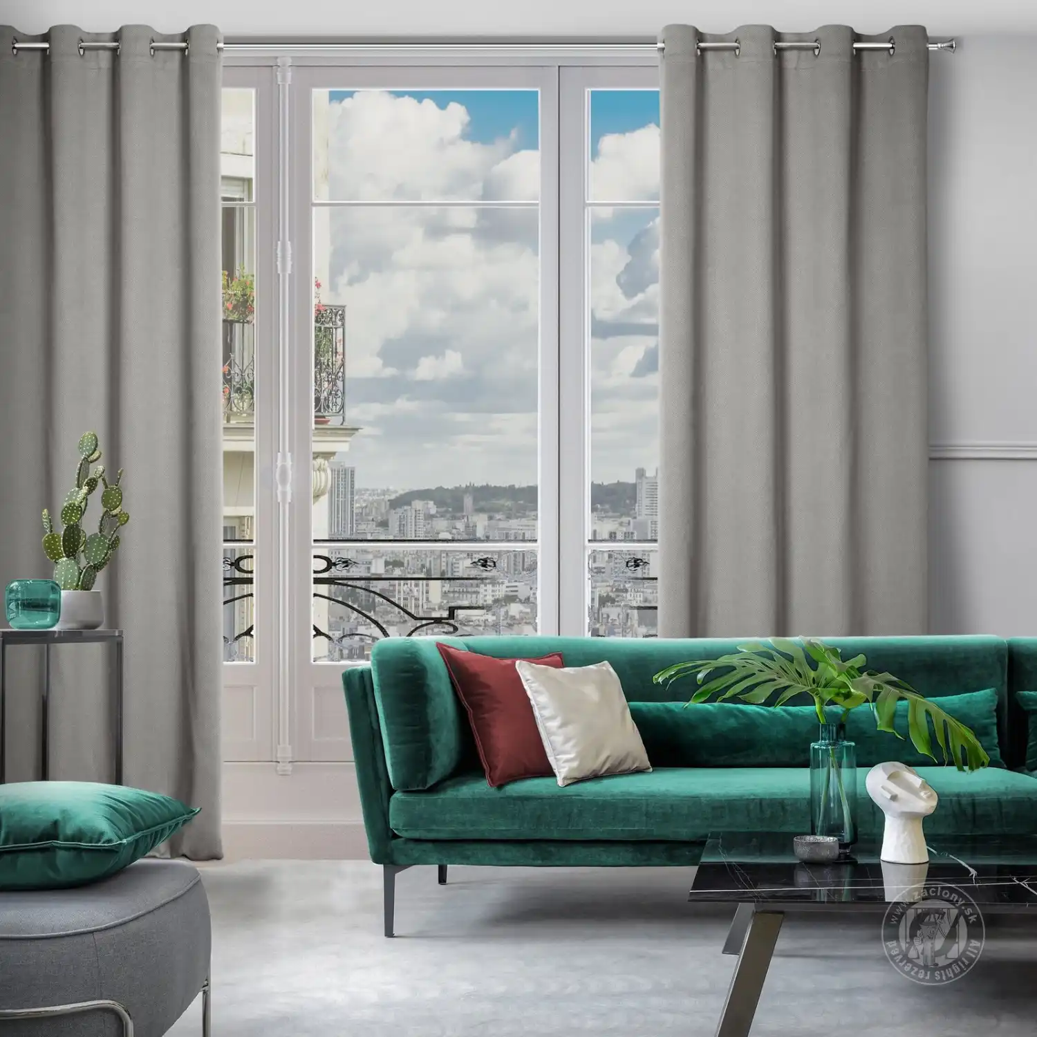 Tento záves, vyrobený z mäkkého a príjemného materiálu s jemným textúrovaným vzorom, slúži nielen na dekoratívny účel v interiéri, ale aj má praktický účel, pretože chráni interiér pred nadmerným slnečným žiarením. Hrubá, látka tieni okno, vďaka čomu sa odporúča najmä do spální, kde zabezpečí príjemnú atmosféru a umožní dlhší spánok.