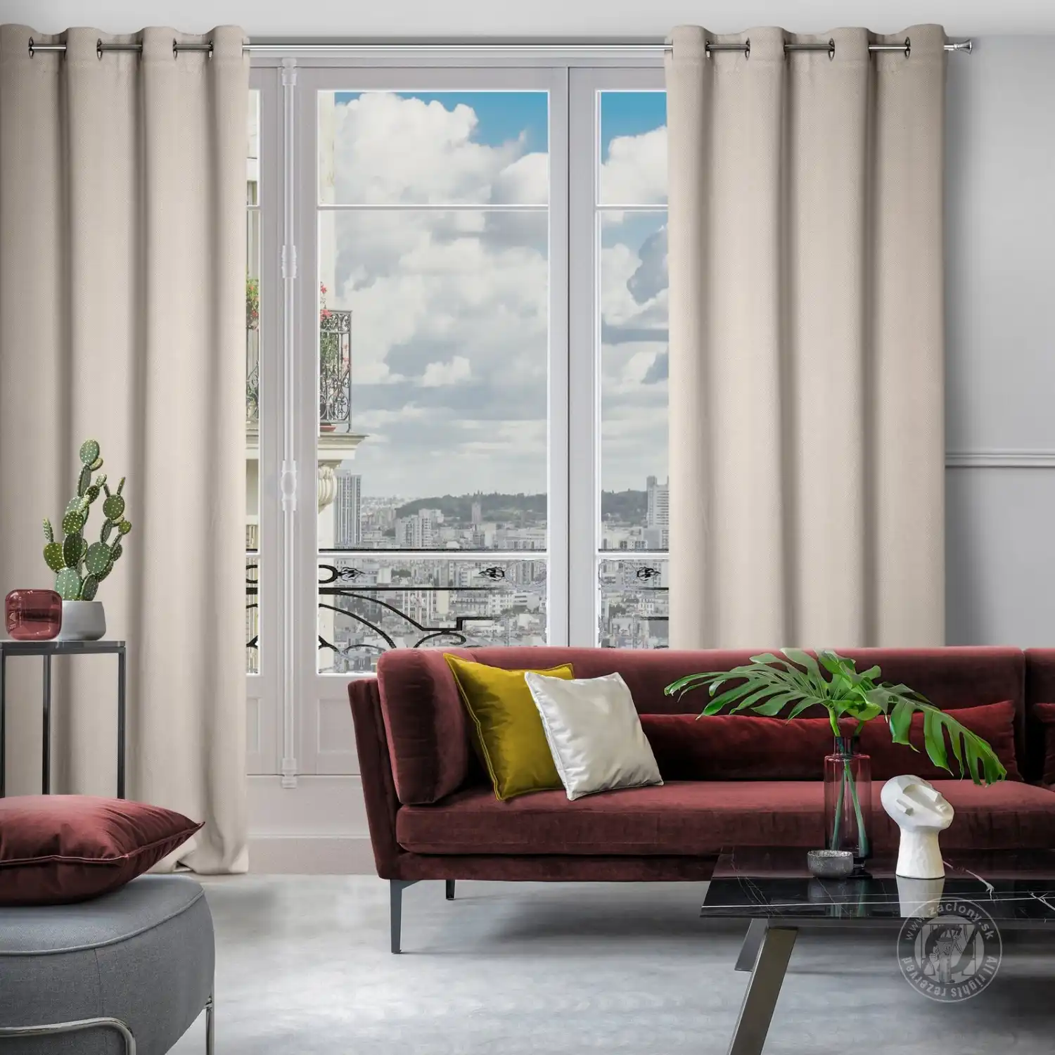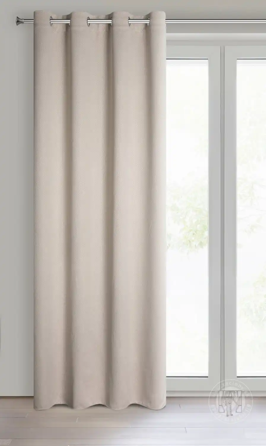 Tento záves, vyrobený z mäkkého a príjemného materiálu s jemným textúrovaným vzorom, slúži nielen na dekoratívny účel v interiéri, ale aj má praktický účel, pretože chráni interiér pred nadmerným slnečným žiarením. Hrubá, látka tieni okno, vďaka čomu sa odporúča najmä do spální, kde zabezpečí príjemnú atmosféru a umožní dlhší spánok.