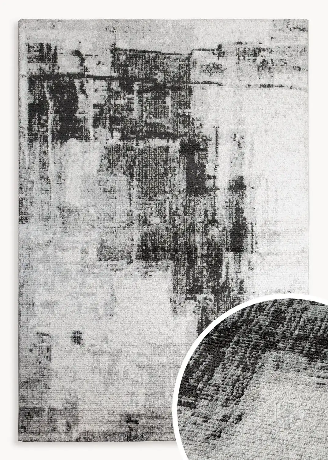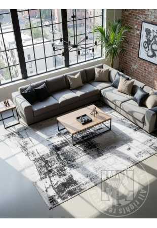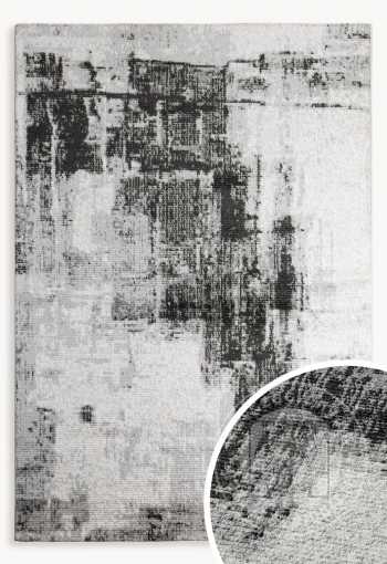 Tento koberec je fúziou moderného umenia a jemnej elegancie. Jeho abstraktný vzor v odtieňoch sivej, bielej a čiernej vytvára efekt pripomínajúci umeleckú maľbu a dodáva interiéru jedinečný charakter. Nepravidelné oderky, gradientné prechody a textúrovaný vzor robia z koberca dojem, že je ako dizajnérsky obraz prenesený na látku.