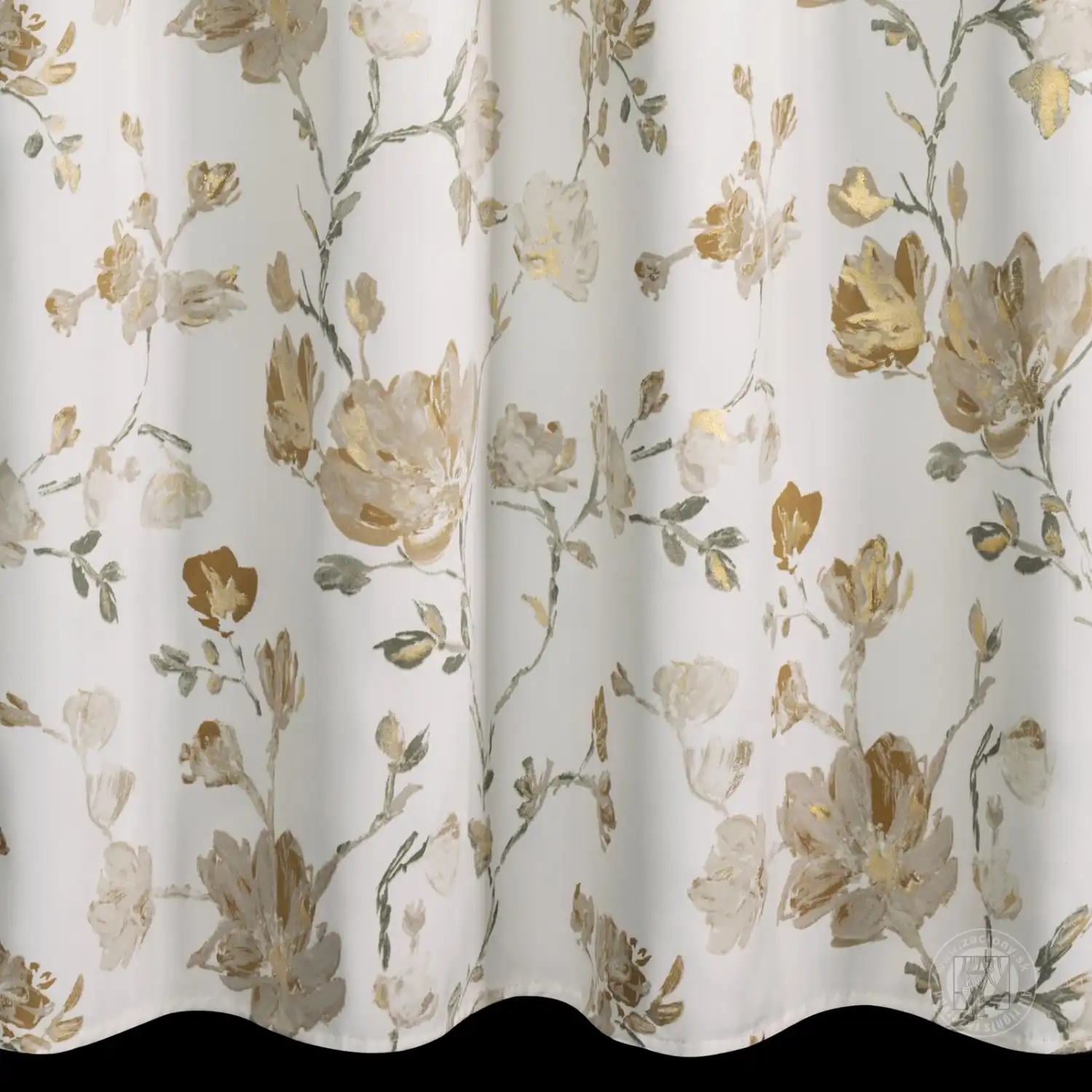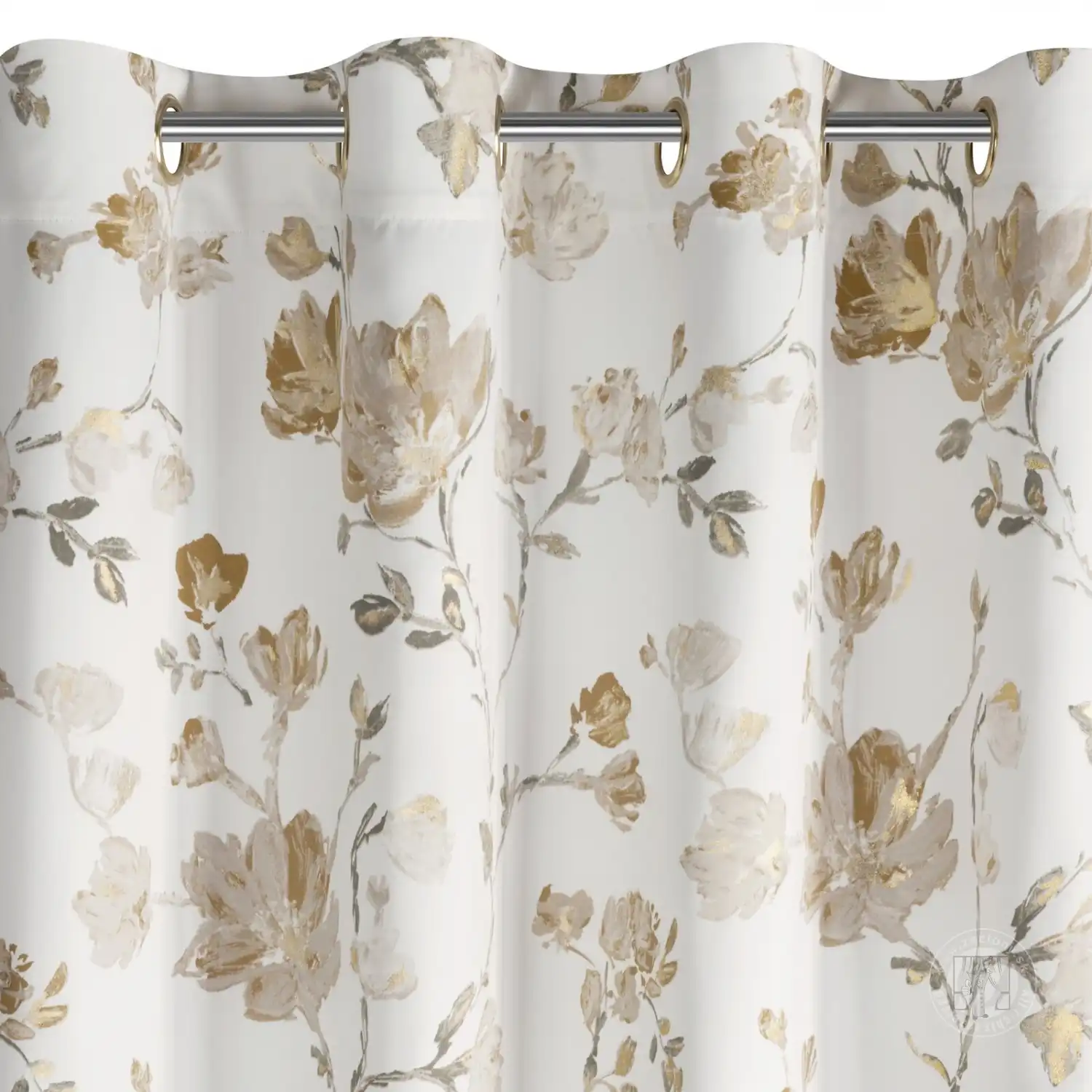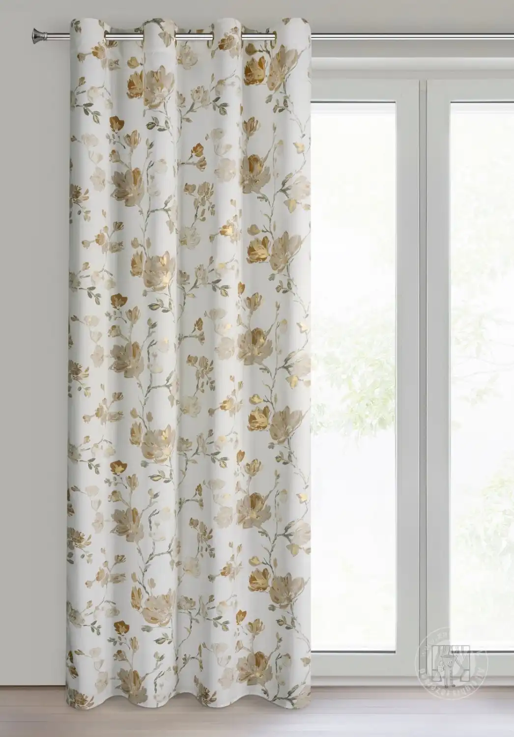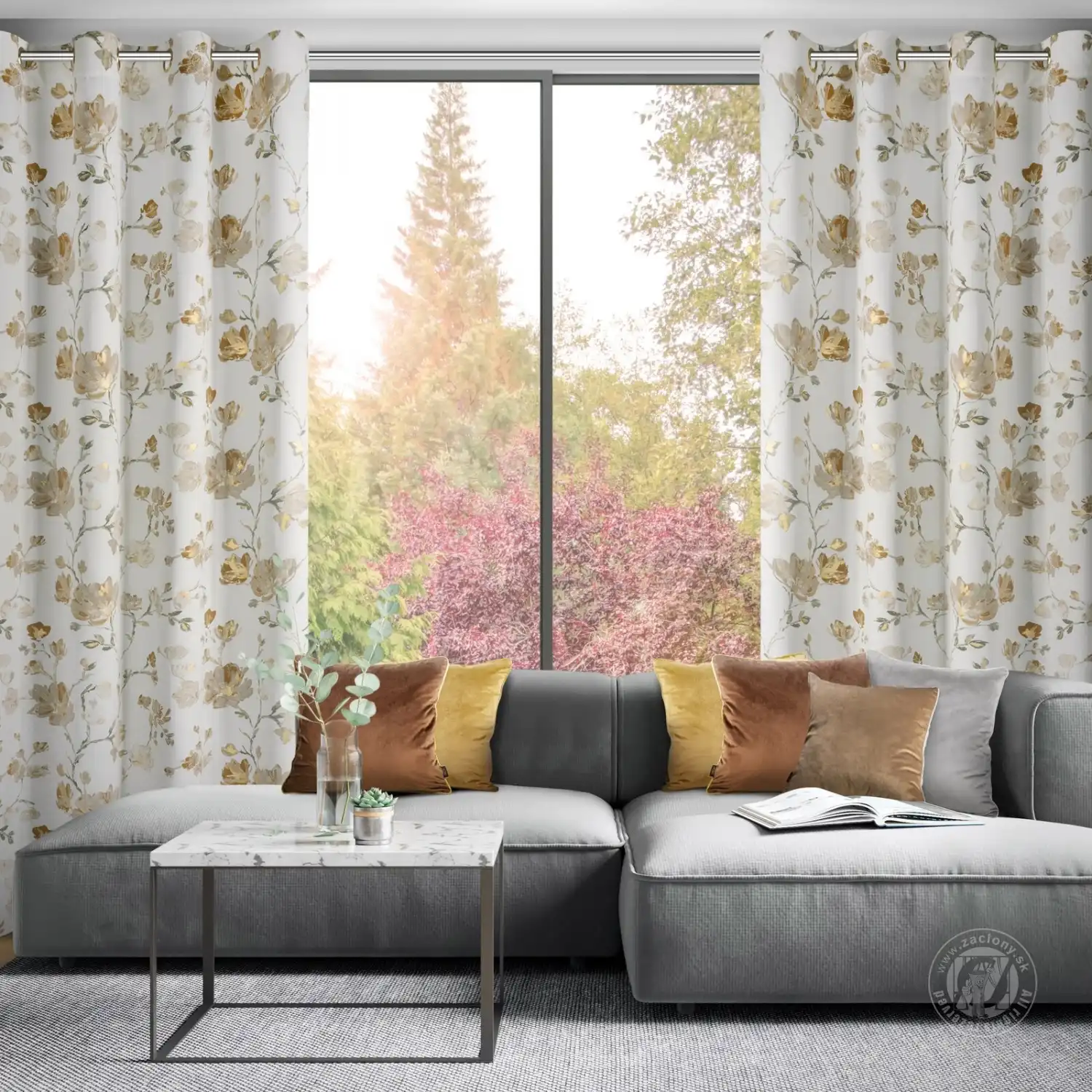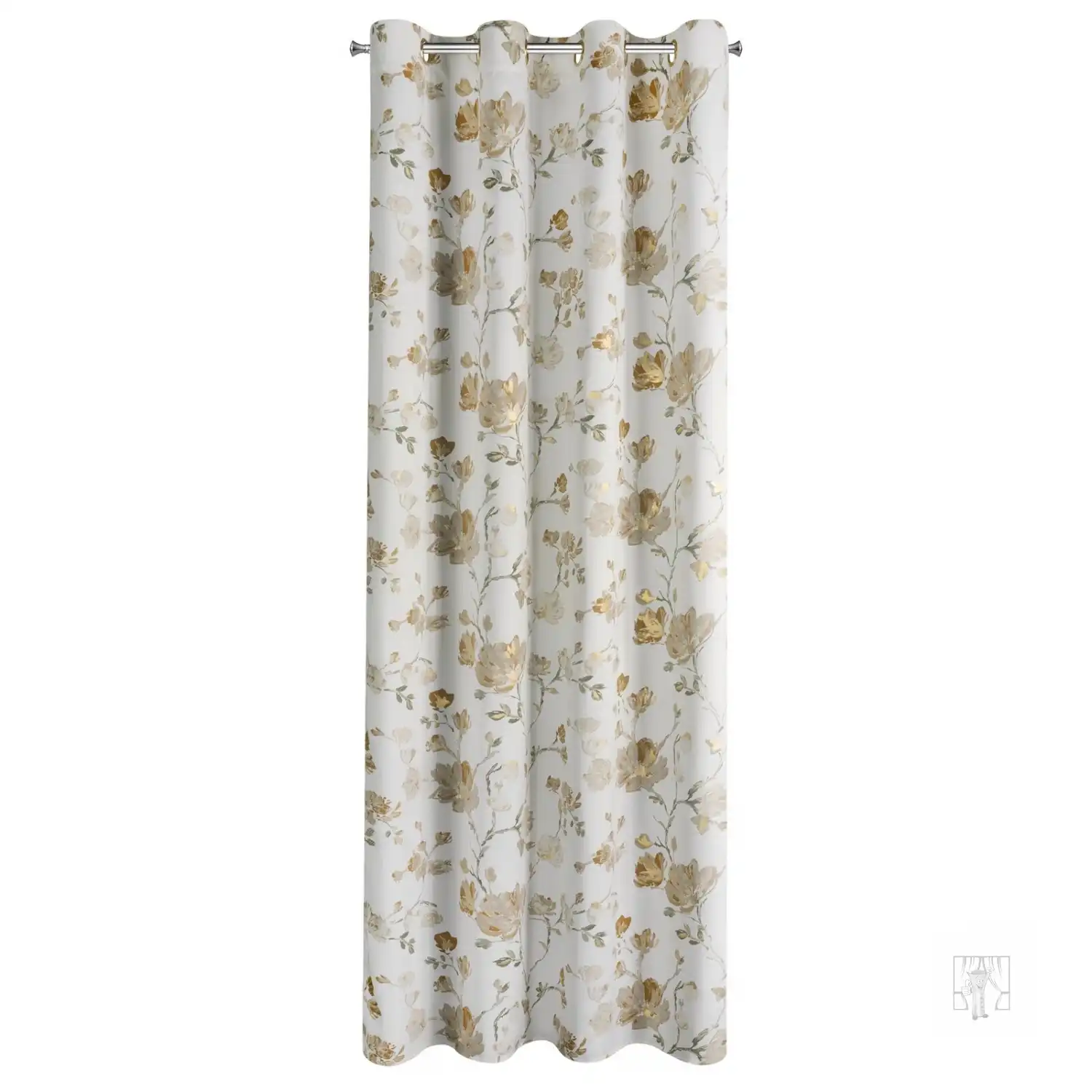 Dodajte svojmu interiéru elegantný a útulný nádych s týmto zatemňujúcim závesom s jemnou béžovou kvetinovou potlačou. Jemný vzor prináša do miestnosti pokoj a harmóniu, zatiaľ čo zatemňovacia látka účinne obmedzuje svetlo a poskytuje pohodlie a súkromie. Vďaka očkám sa záclona ľahko zavesí a krásne sa hodí, čím vytvára dekoratívnu úpravu okna.