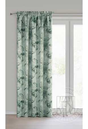 Luxusný zatemňovací záves vyrobený z látky typu dimout, ktorá účinne obmedzuje svetlo a zaisťuje pohodlie v spálni alebo obývačke. Zdobený výraznou potlačou exotických listov, vytvorenou digitálnou tlačou, si záves zachováva svoju odolnosť a žiarivé farby. Záves má riasiacu pásku, ktorá umožňuje elegantné skladanie a presné prispôsobenie sa záclonovej tyči.