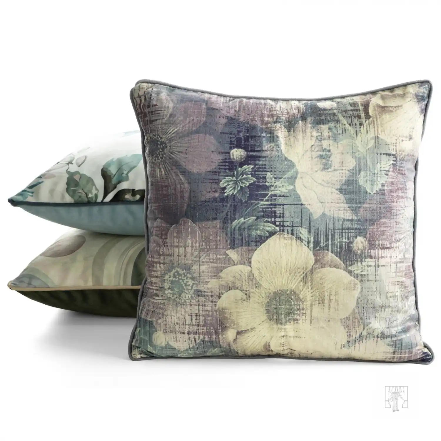 Táto dekoračná obliečka na vankúš je vyrobená z luxusnej zamatovej látky, ktorá sa pýši výnimočnou mäkkosťou a jemným leskom. Jej povrch zdobí jemná kvetinová potlač – pôvabný a elegantný motív, ktorý do každého interiéru vnáša atmosféru harmónie a pokoja. Starostlivo upravené okraje sú ozdobené elegantným lemovaním, ktoré dodáva obliečke na vankúš elegantný charakter a zdôrazňuje jej rafinovaný štýl. Praktický zips, diskrétne skrytý vo šve, zaisťuje jednoduché používanie a esteticky príjemný vzhľad.