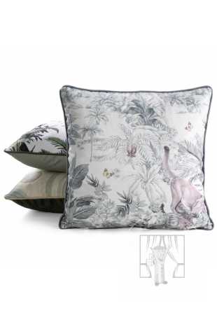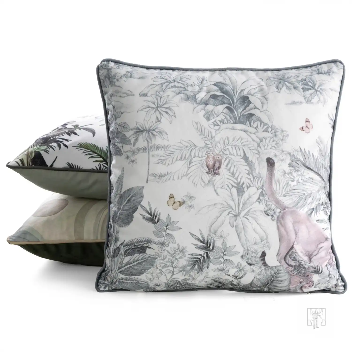 Táto dekoračná obliečka na vankúš je vyrobená z luxusnej zamatovej látky, ktorá sa pýši výnimočnou mäkkosťou a jemným leskom. Jej povrch zdobí jemná prírodná potlač – pôvabný a elegantný motív, ktorý do každého interiéru vnáša atmosféru harmónie a pokoja. Starostlivo upravené okraje sú ozdobené elegantným lemovaním, ktoré dodáva obliečke na vankúš elegantný charakter a zdôrazňuje jej rafinovaný štýl. Praktický zips, diskrétne skrytý vo šve, zaisťuje jednoduché používanie a esteticky príjemný vzhľad.