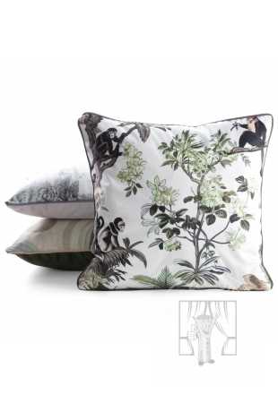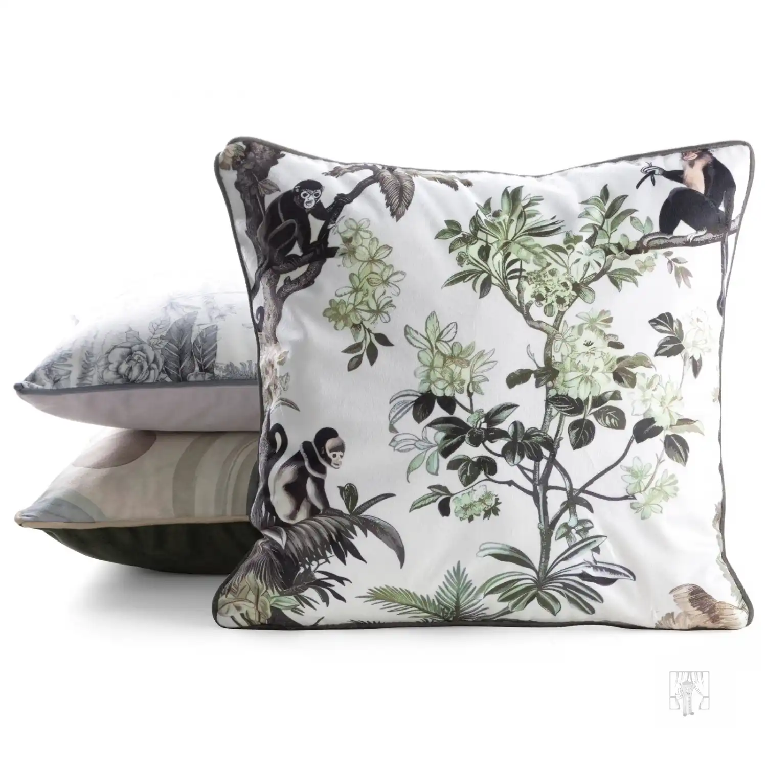 Táto dekoračná obliečka na vankúš je vyrobená z luxusnej zamatovej látky, ktorá sa pýši výnimočnou mäkkosťou a jemným leskom. Jej povrch zdobí jemná prírodná potlač – pôvabný a elegantný motív, ktorý do každého interiéru vnáša atmosféru harmónie a pokoja. Starostlivo upravené okraje sú ozdobené elegantným lemovaním, ktoré dodáva obliečke na vankúš elegantný charakter a zdôrazňuje jej rafinovaný štýl. Praktický zips, diskrétne skrytý vo šve, zaisťuje jednoduché používanie a esteticky príjemný vzhľad.