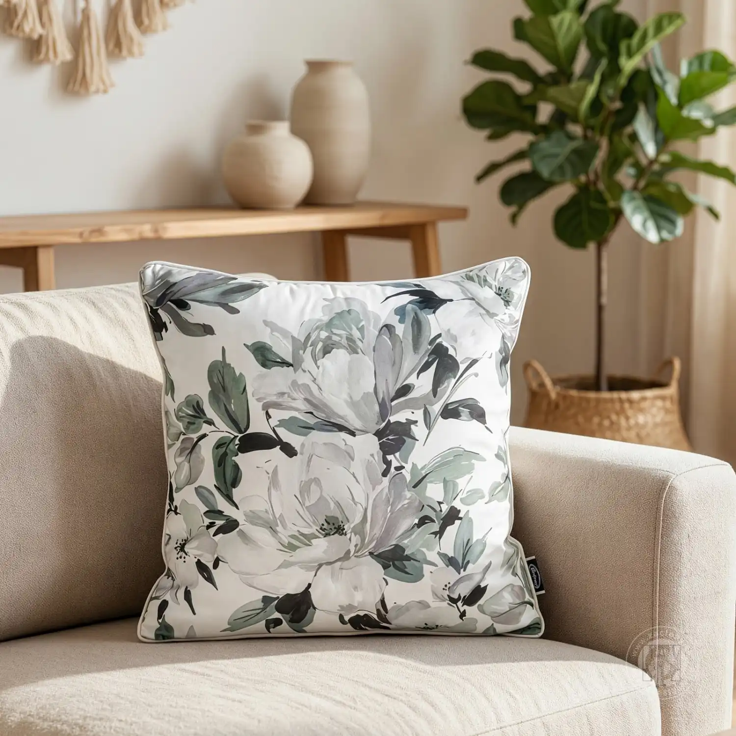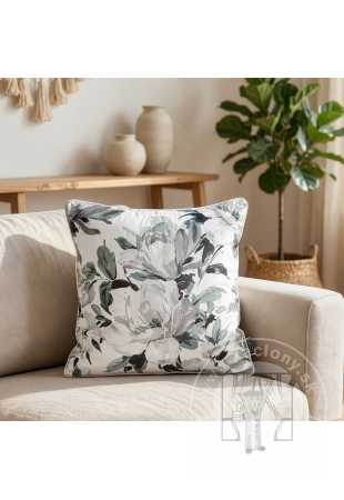 Táto dekoračná obliečka na vankúš je vyrobená z luxusnej zamatovej látky, ktorá sa pýši výnimočnou mäkkosťou a jemným leskom. Jej povrch zdobí jemná prírodná potlač – pôvabný a elegantný motív, ktorý do každého interiéru vnáša atmosféru harmónie a pokoja. Starostlivo upravené okraje sú ozdobené elegantným lemovaním, ktoré dodáva obliečke na vankúš elegantný charakter a zdôrazňuje jej rafinovaný štýl. Praktický zips, diskrétne skrytý vo šve, zaisťuje jednoduché používanie a esteticky príjemný vzhľad.