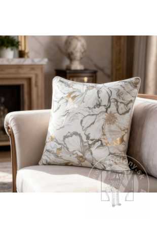 Táto dekoračná obliečka na vankúš je vyrobená z luxusnej zamatovej látky, ktorá sa pýši výnimočnou mäkkosťou a jemným leskom. Jej povrch zdobí jemná prírodná potlač – pôvabný a elegantný motív, ktorý do každého interiéru vnáša atmosféru harmónie a pokoja. Starostlivo upravené okraje sú ozdobené elegantným lemovaním, ktoré dodáva obliečke na vankúš elegantný charakter a zdôrazňuje jej rafinovaný štýl. Praktický zips, diskrétne skrytý vo šve, zaisťuje jednoduché používanie a esteticky príjemný vzhľad.