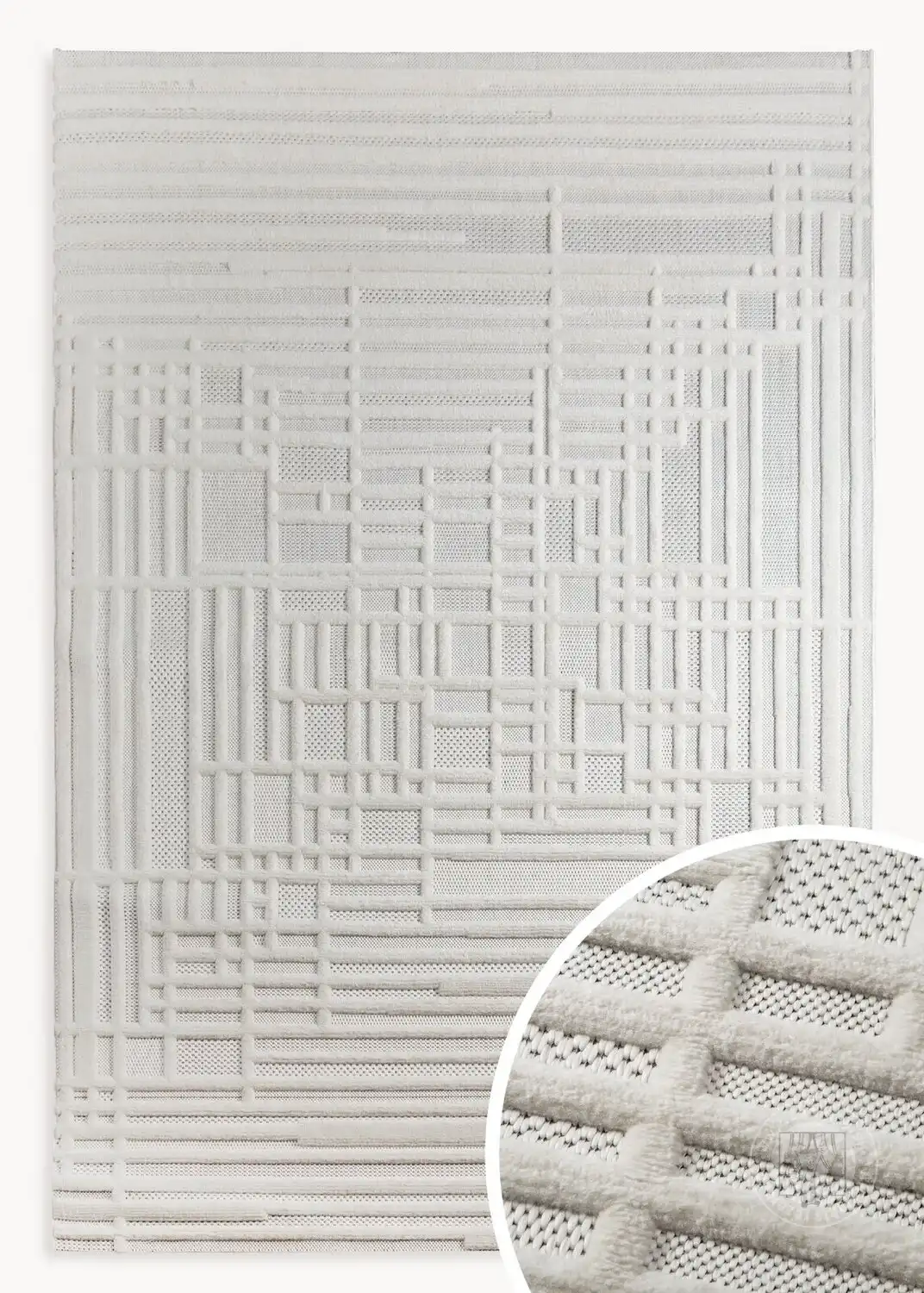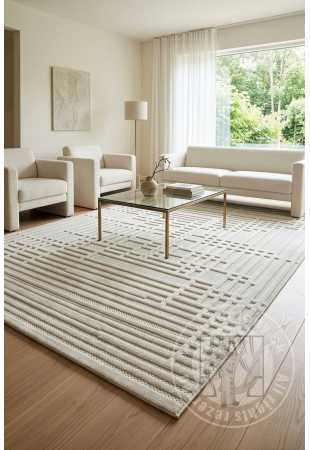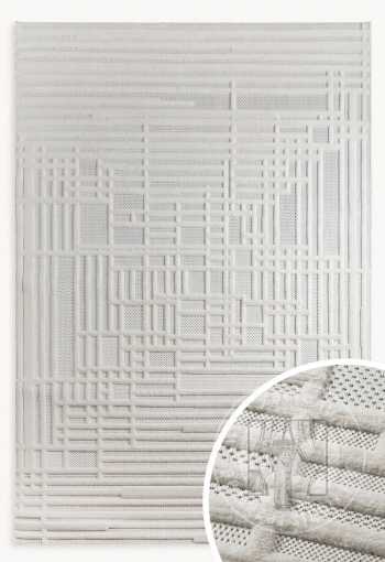 Tento koberec zaujme svojou modernou kompozíciou založenou na pretínajúcich sa rovných líniách, ktoré vytvárajú elegantnú architektonickú štruktúru. Toto je ešte umocnené reliéfnou, textúrovanou povrchovou úpravou, ktorá dodáva kobercu trojrozmerný efekt. To dodáva geometrickému vzoru výrazný, jedinečný charakter.
