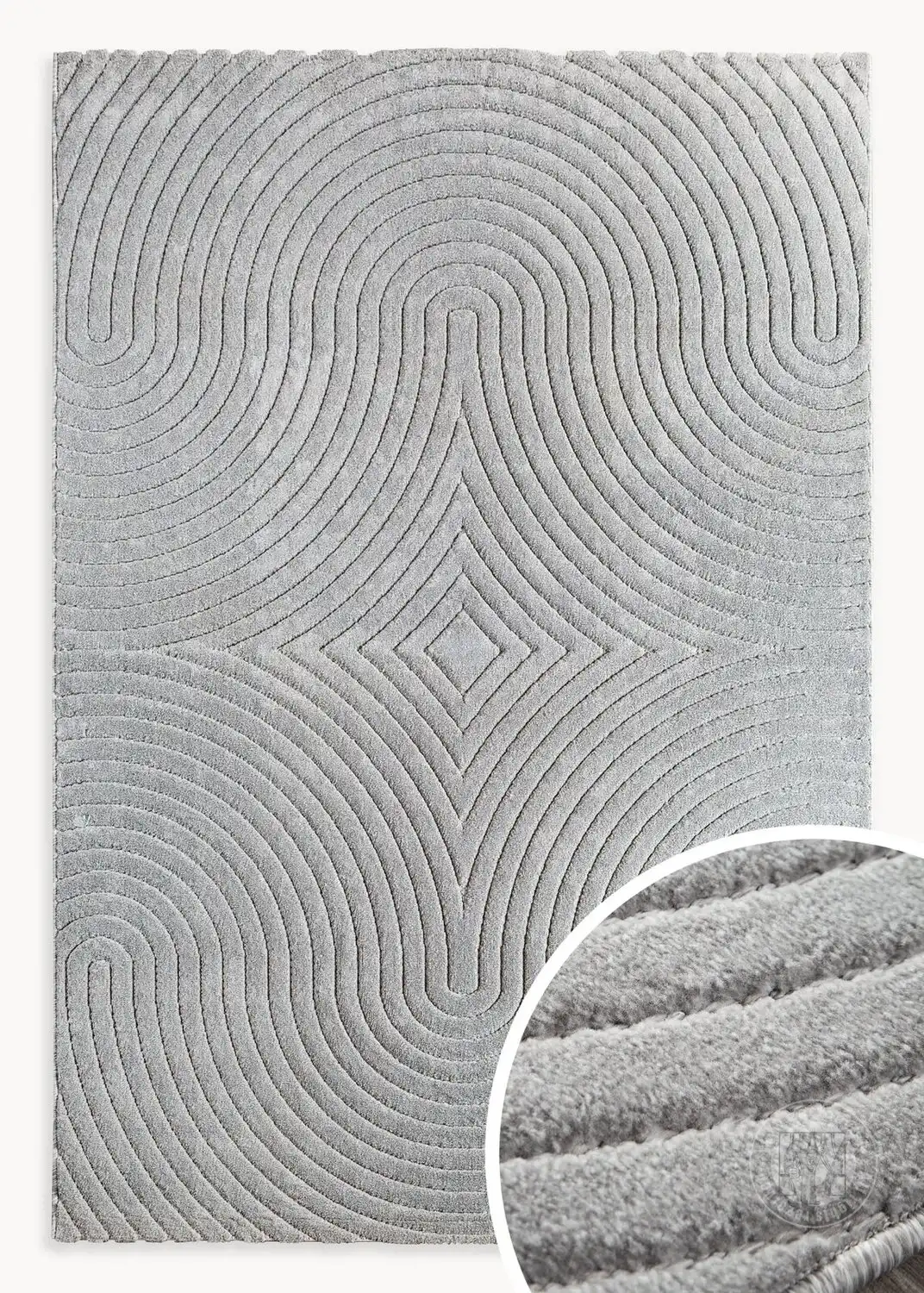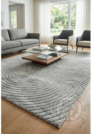 Štýlový koberec s výrazným, reliéfnym oblúkovým vzorom, ktorý vytvára harmonickú geometrickú kompozíciu. Trojrozmerná štruktúra krásne odráža svetlo a dodáva povrchu elegantný charakter. Tento model vyzerá skvele v moderných, minimalistických aj klasicky zariadených interiéroch.
