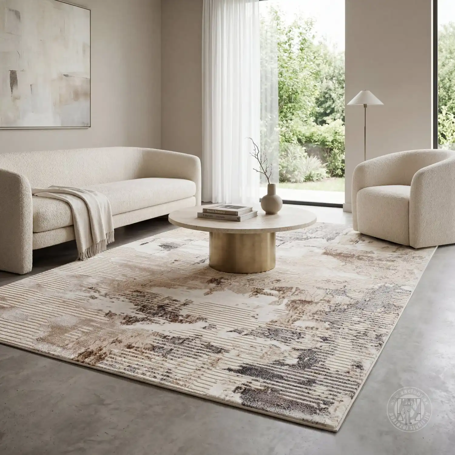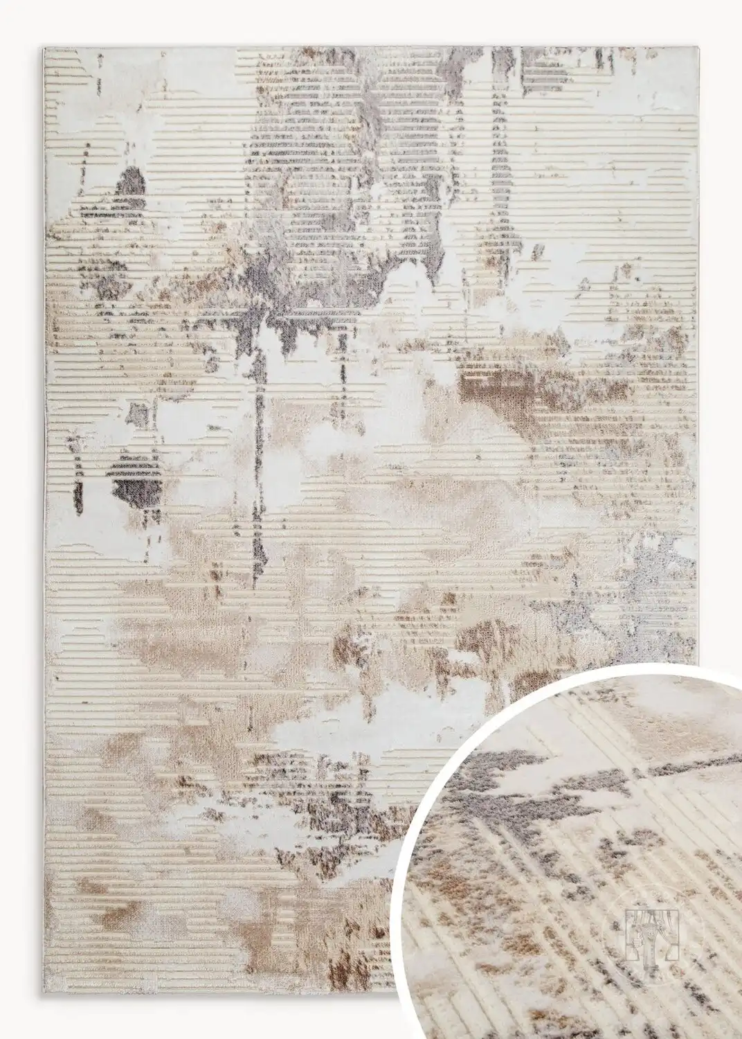 Koberec OMEGA je ideálny pre tých, ktorí hľadajú jemné, krémové odtiene v kombinácii s dynamickým, abstraktným dizajnom. Jeho svetlé farby opticky zväčšujú priestor a jeho moderný štýl ho robí vhodným do obývacích izieb aj spální. Je to produkt pre tých, ktorí chcú do miestnosti vniesť teplo bez pridania výrazných farieb. Namiesto tradičných tvarov alebo kvetov je jeho povrch zdobený nepravidelnými, „maľovanými“ ryhami, ktoré evokujú prírodné textúry, ako je pieskovec alebo jemne víriaca hladina morského pobrežia.